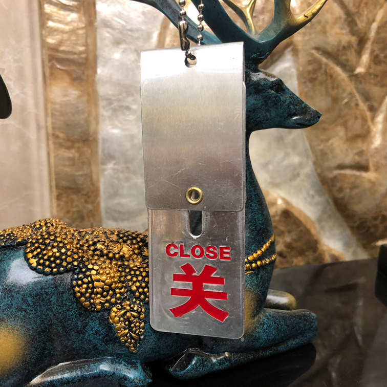 现货铝制双面管道开关开闭旋转状态牌设备牌带不锈钢珠链开关状态标识牌 阀门机器耐高温防水室外开关牌