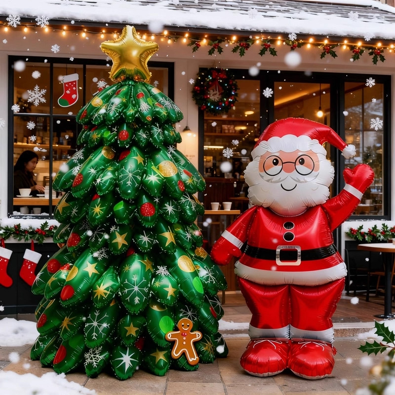 元旦圣诞节站立摆件气球灯笼装饰套装圣诞树麋鹿氛围场景布置道具