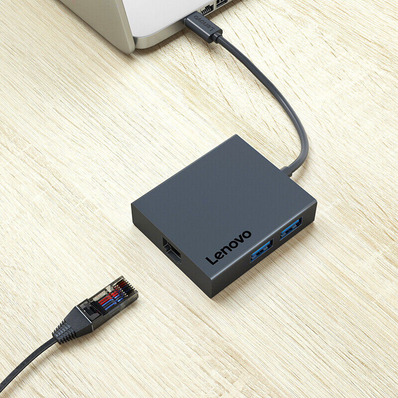 联想Type-C转千兆有线网口转换器USBC扩展坞分线器C130带PD充电口