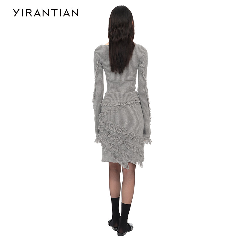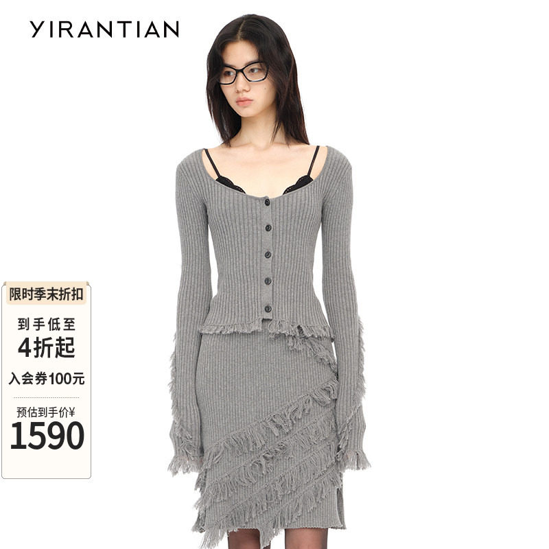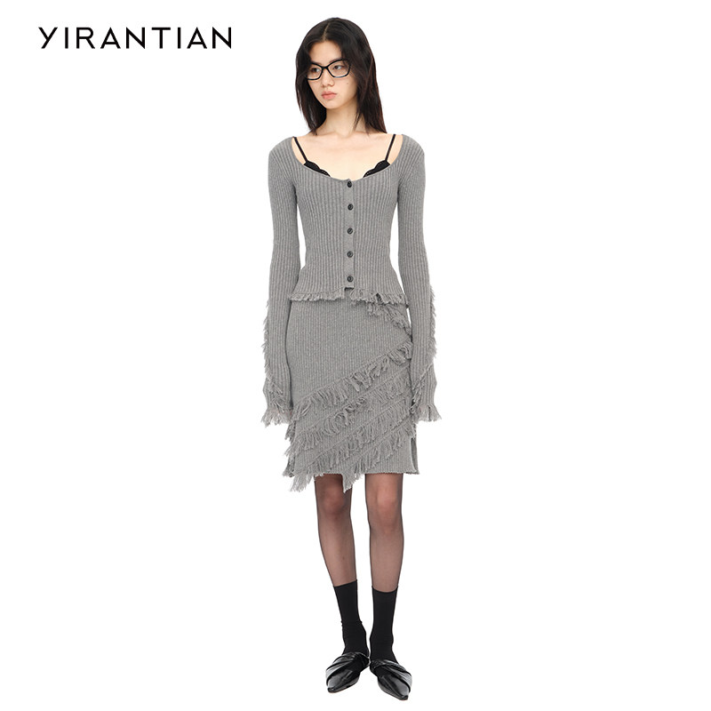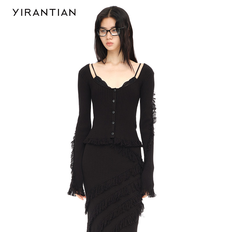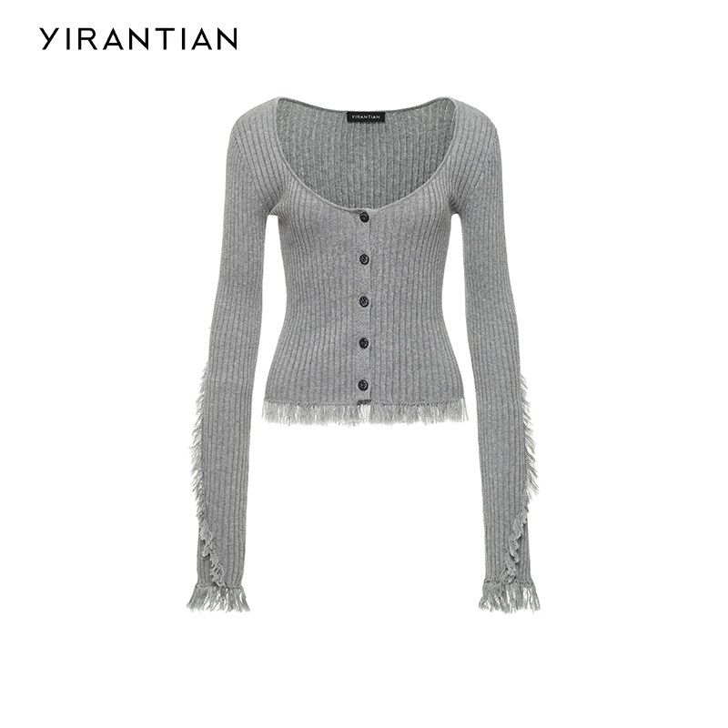 【YIRANTIAN】设计师质感休闲通勤简约U型领流苏针织开衫女