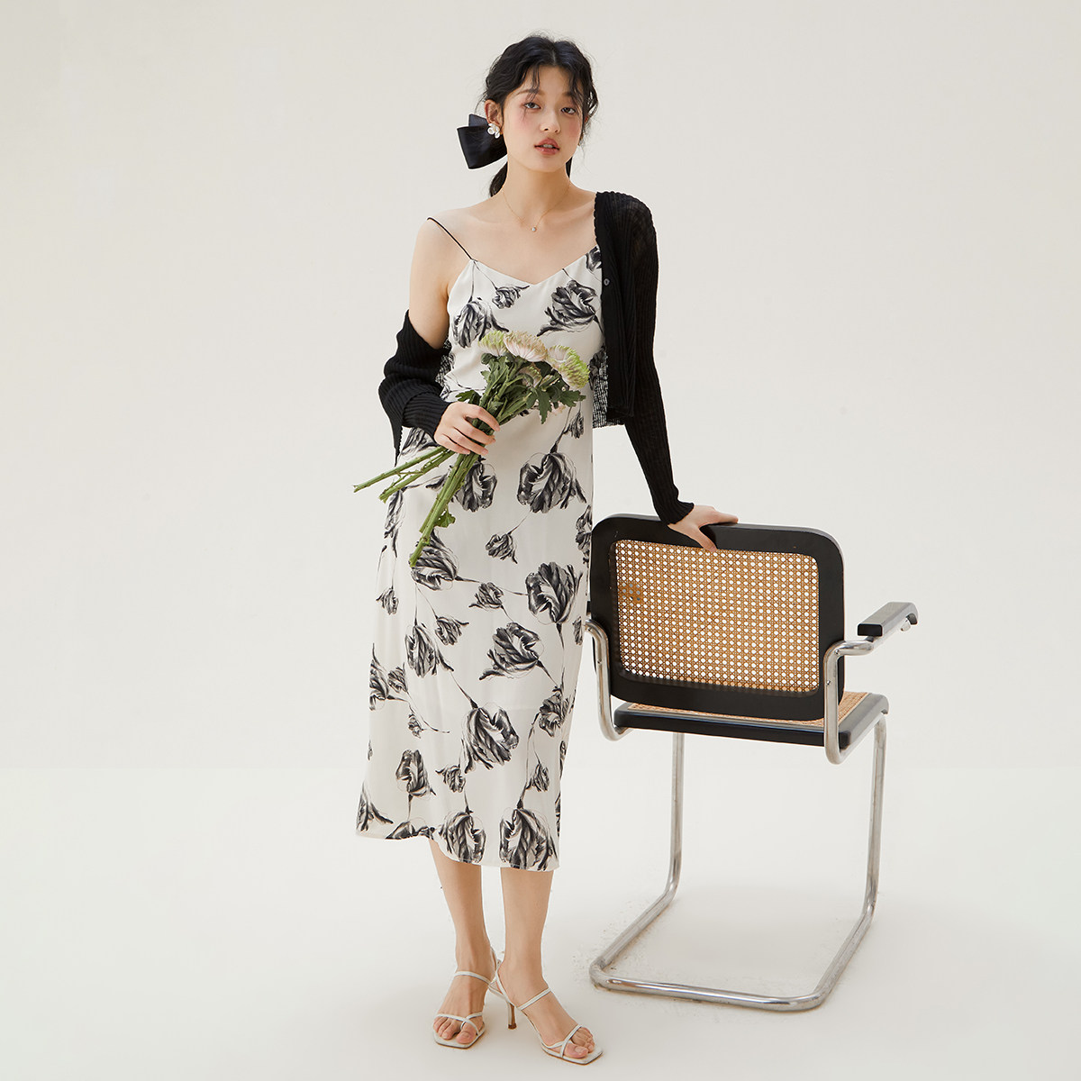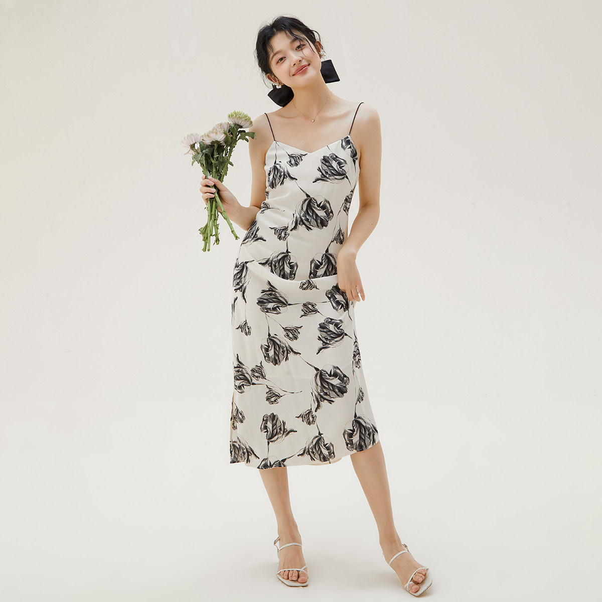 one more法式吊带连衣裙女2025夏季新款雪纺碎花裙海边度假沙滩裙
