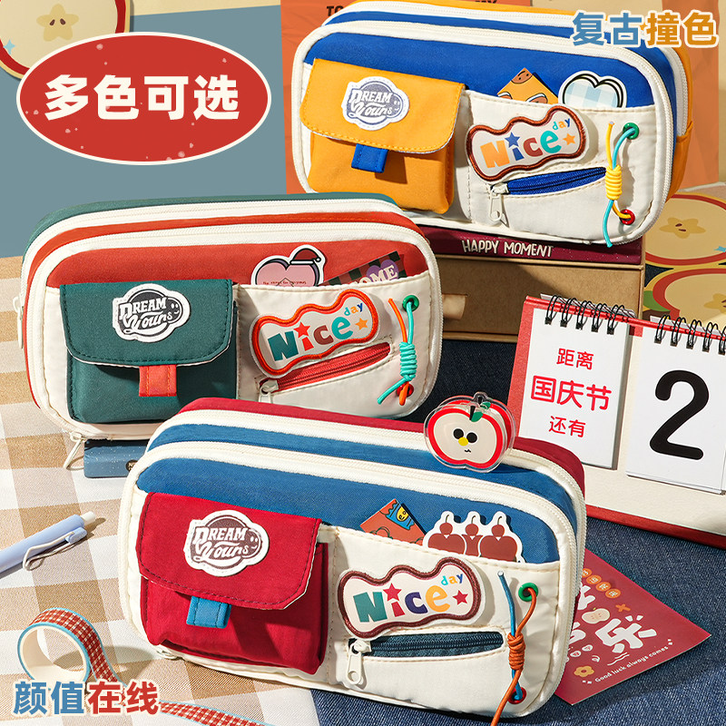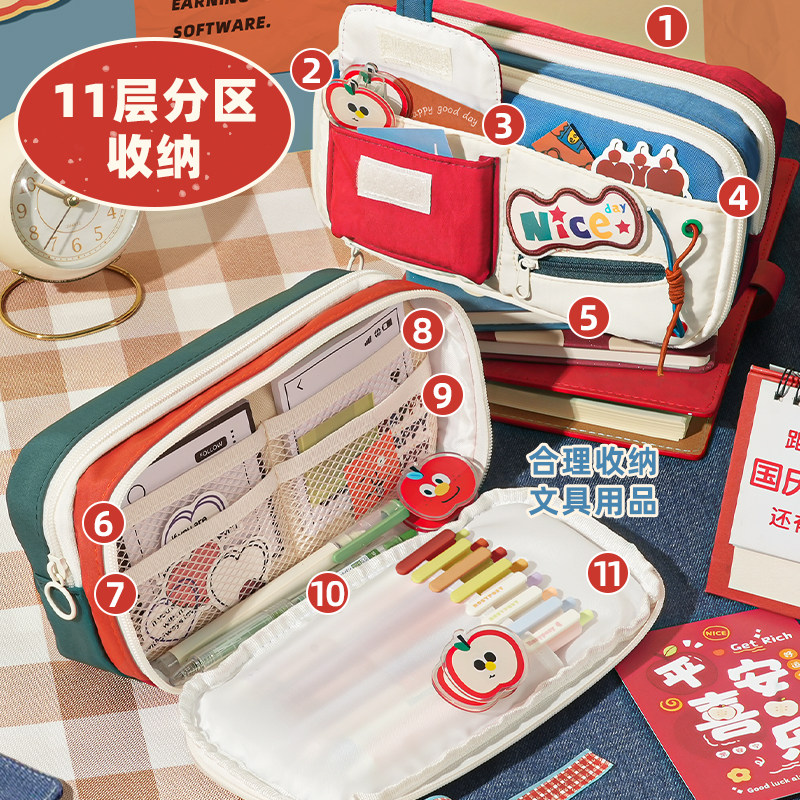 不软塌!复古笔袋11层大容量女生2026新款文具盒女孩款初中生高颜值ins风文具袋小众不撞款男孩小学生铅笔盒