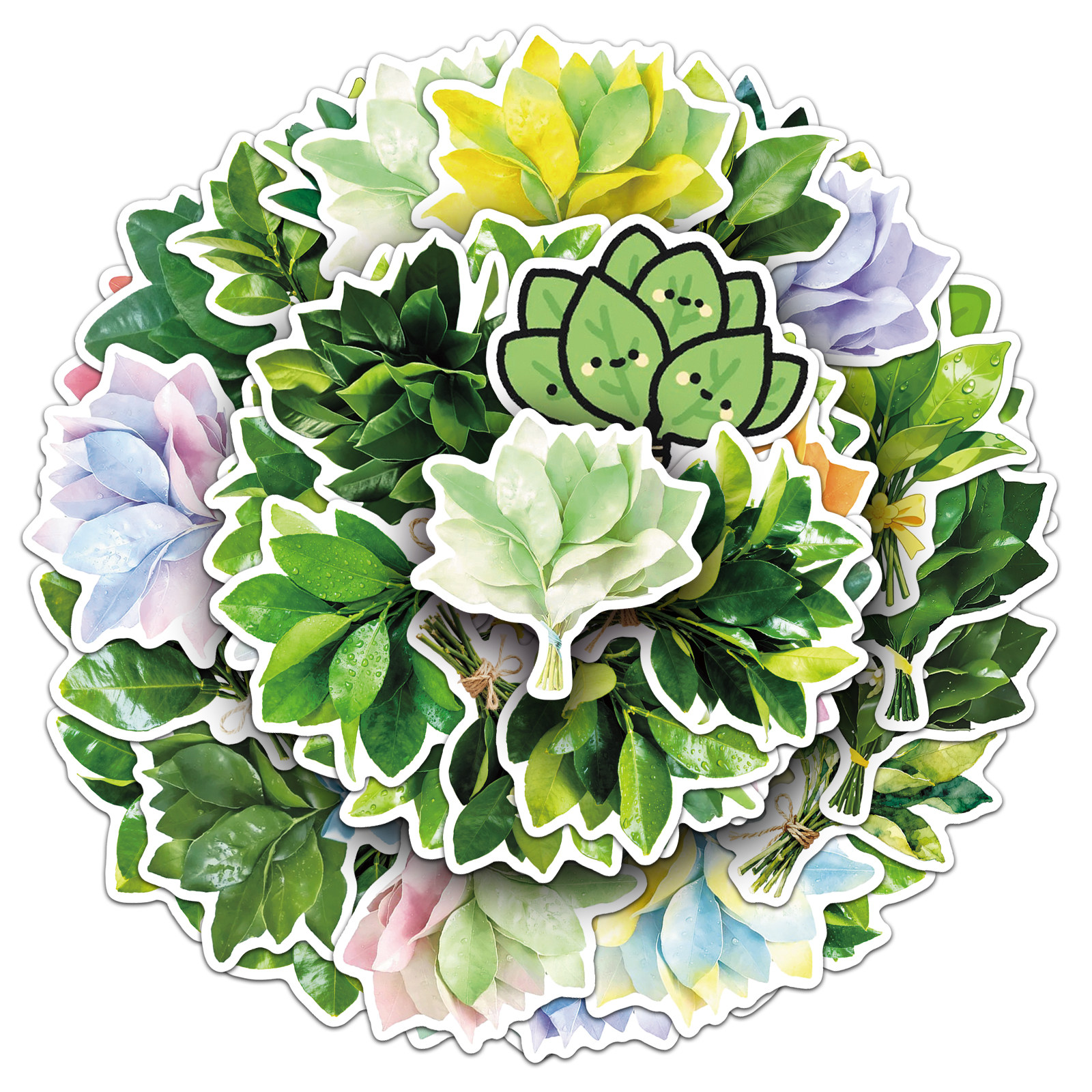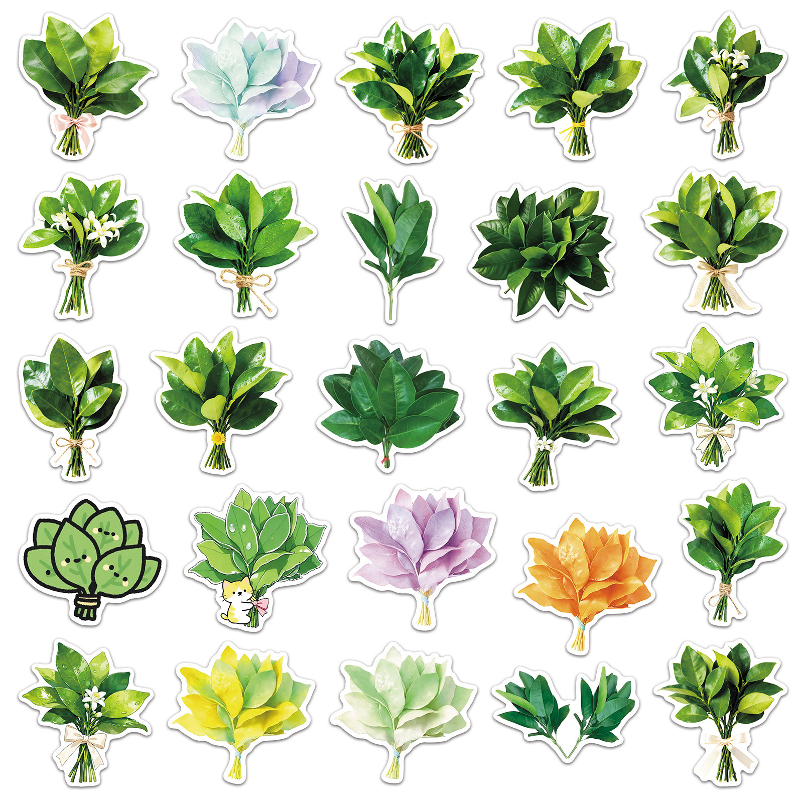 100张柚子叶贴纸好运去晦气植物小清新咕卡手帐装饰防水礼物盒子平板电脑滑板车吉他耳机文具头盔行李箱贴纸
