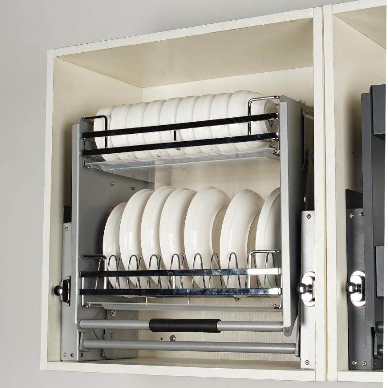厂家直供不锈钢碗碟升降拉篮橱柜抽屉碗架吊柜下拉式收纳吊柜拉篮