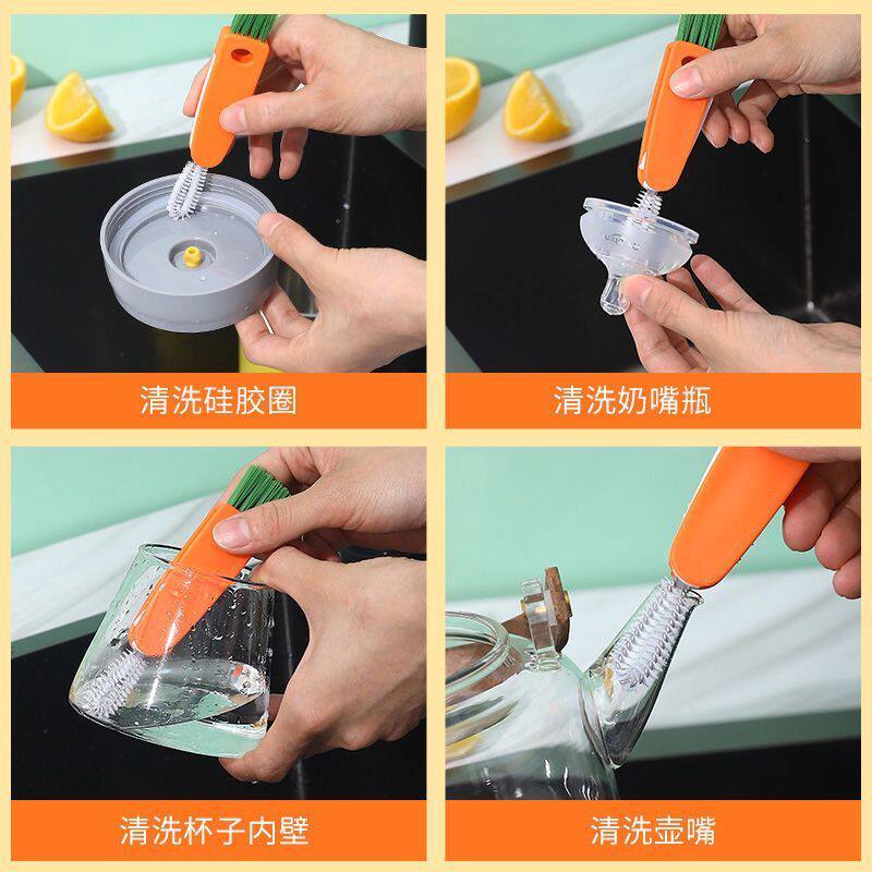 多功能洗奶瓶刷子三合一杯盖清洁刷家用洗奶嘴保温杯杯刷长柄杯子