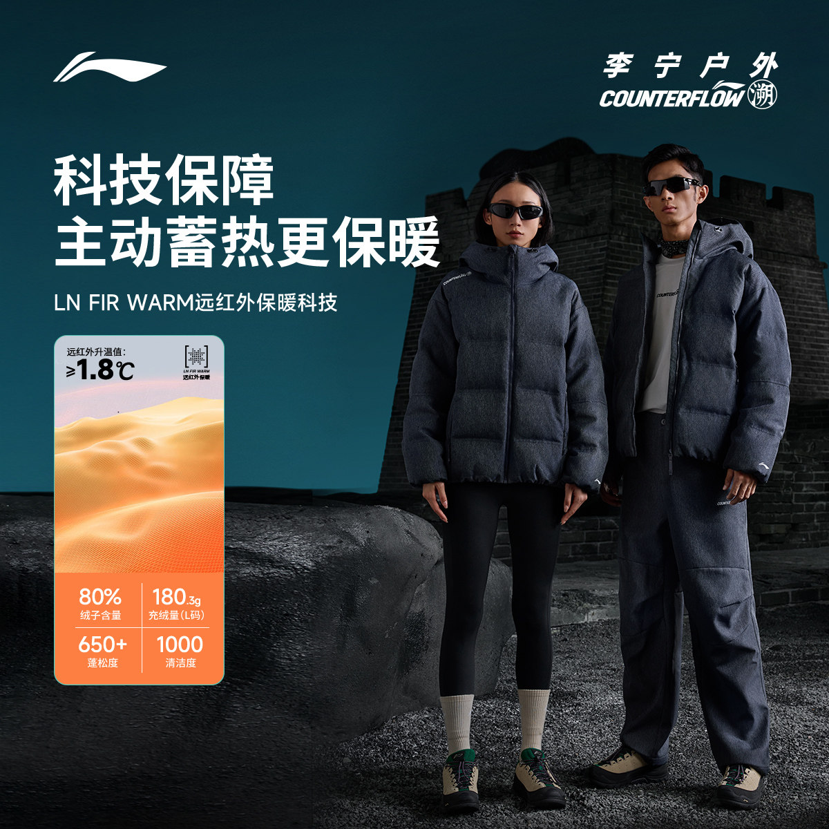 李宁户外CF溯|短款羽绒服男冬季新款鸭绒情侣加厚休闲运动外套女