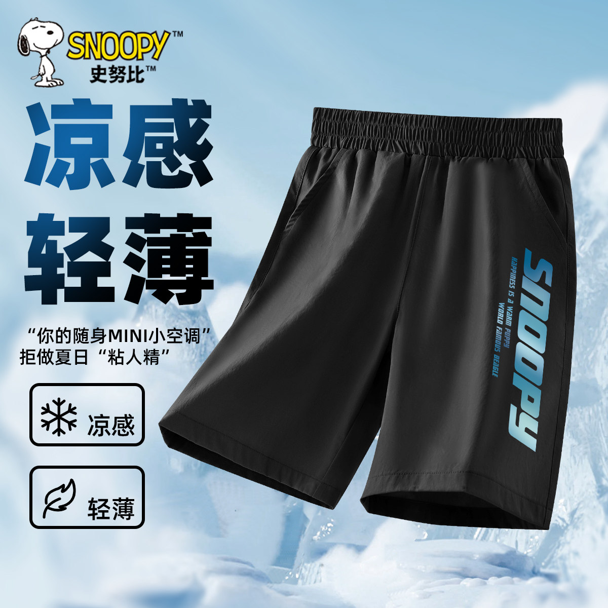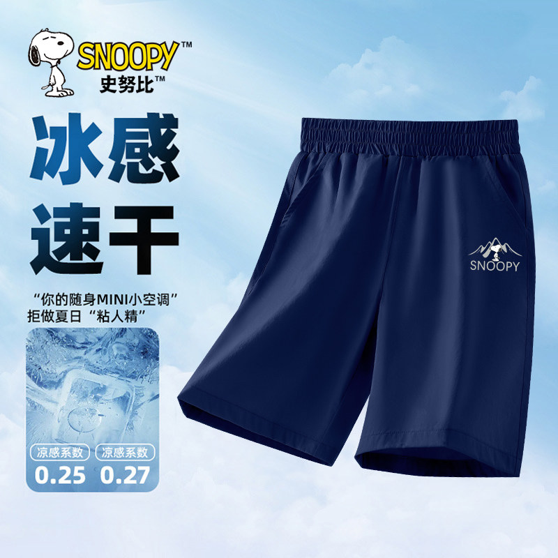 史努比男童速干短裤男孩夏季冰丝裤子男大童薄款运动裤儿童五分裤