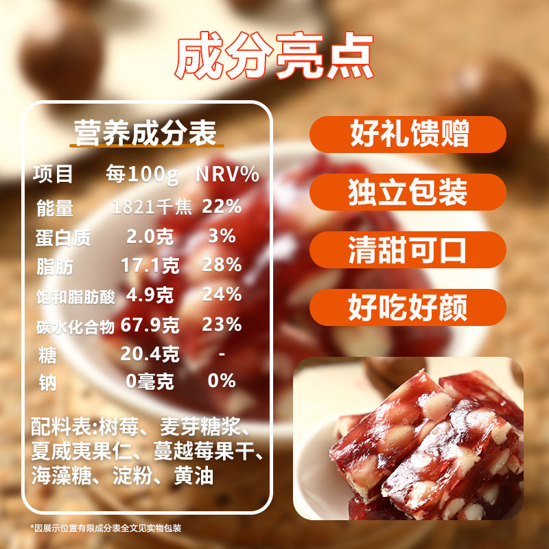 无蔗糖夏威夷果树莓软糖果糕孕妇零食代餐解馋百香果小吃休闲食品