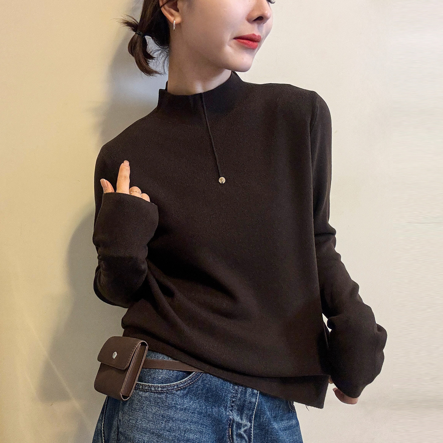 鄂尓半高2025秋冬新款安迪绒毛衣半高领套头衫洋气百搭款