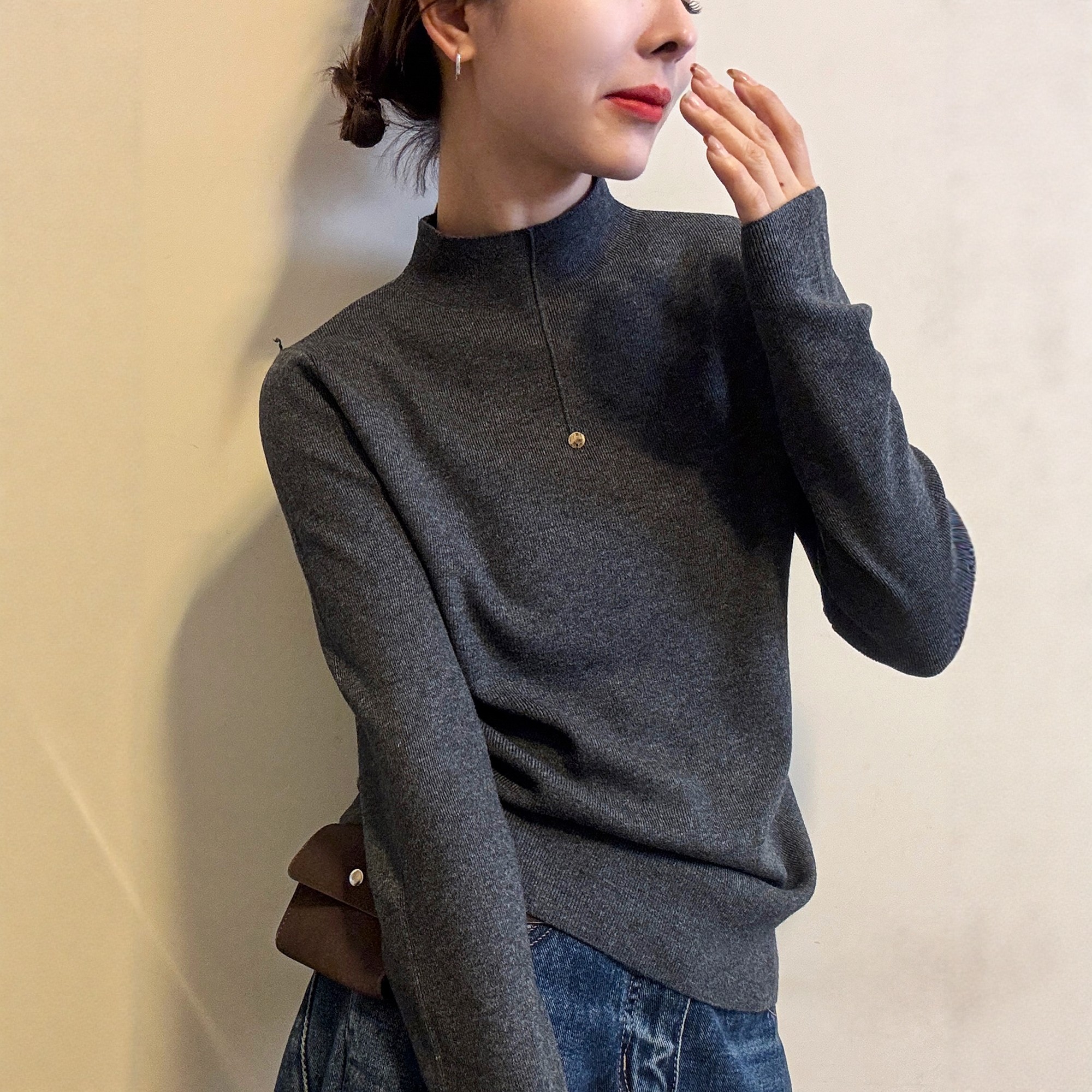 灰色半高领打底衫女装内搭高级2025新款爆款秋冬针织毛衣外穿上衣
