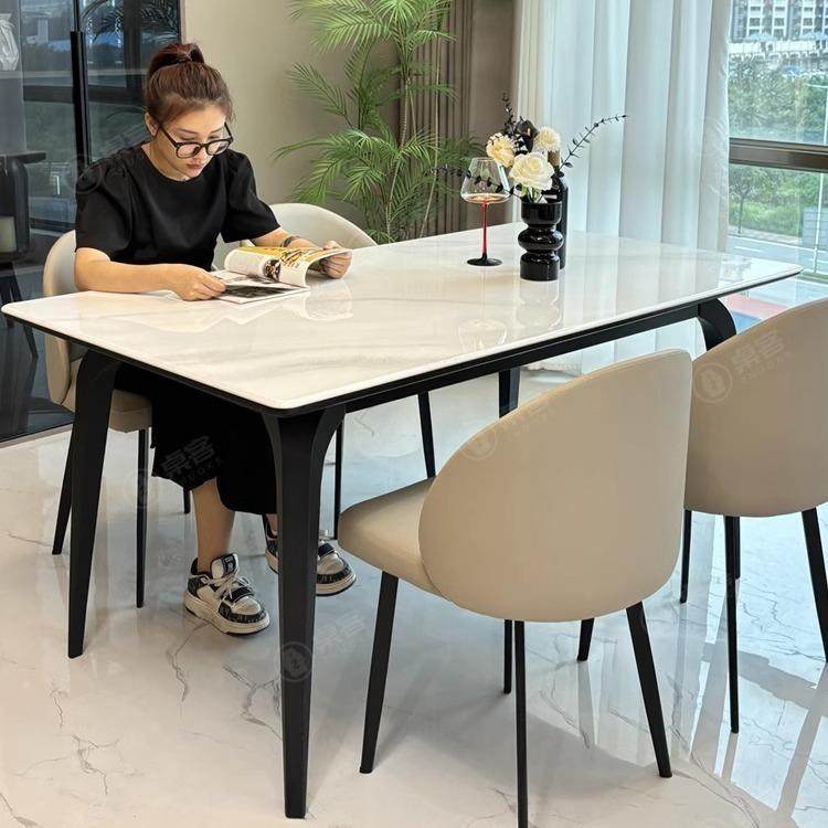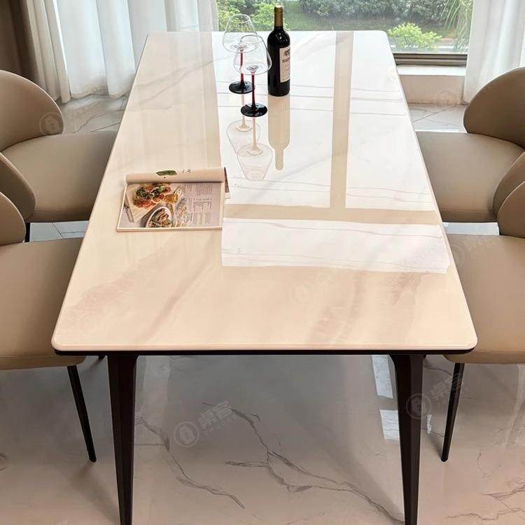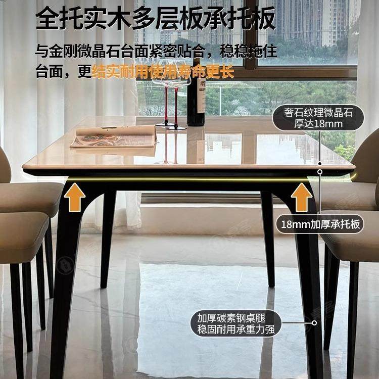 轻奢微晶石餐桌椅高端组合现代简约奢石天然大理石超晶石饭桌聚餐