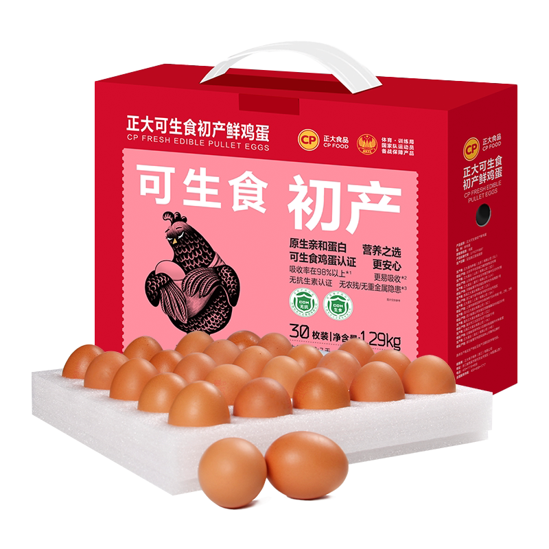 正大可生食初产蛋新鲜鸡蛋30枚无沙门氏菌可生食认证整箱1.29kg