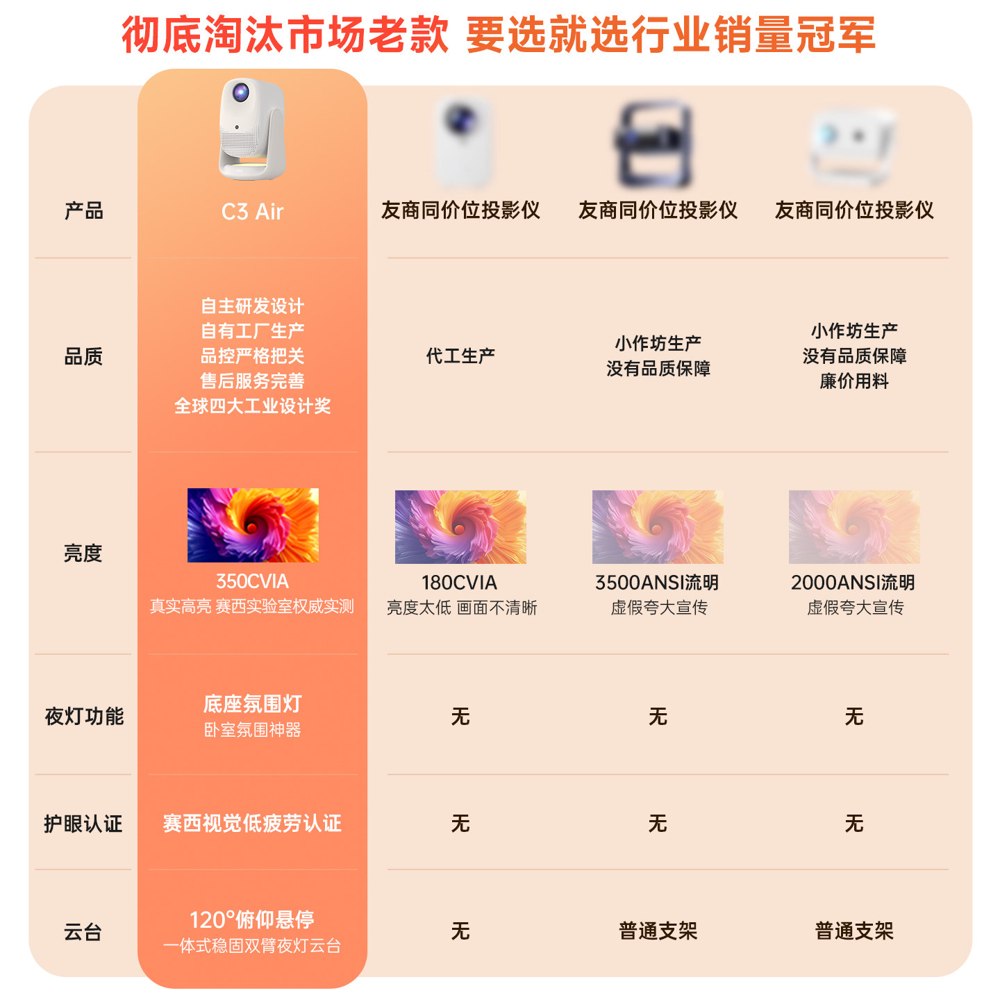 【年度新品政府补贴】大眼橙C3Air投影仪高亮家用高清放映机1080P4K解码影院卧室宿舍无需幕布可连手机26新款