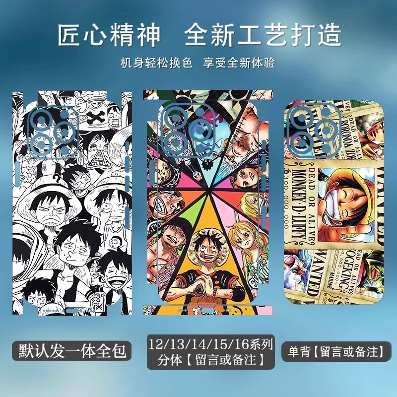 苹果手机背膜贴纸适用于iPhone16/15/14/13ProMax全包边后壳12XsMax1312mini后背膜全身海贼王贴纸3M贴膜