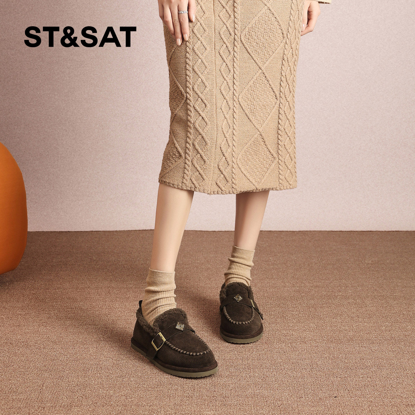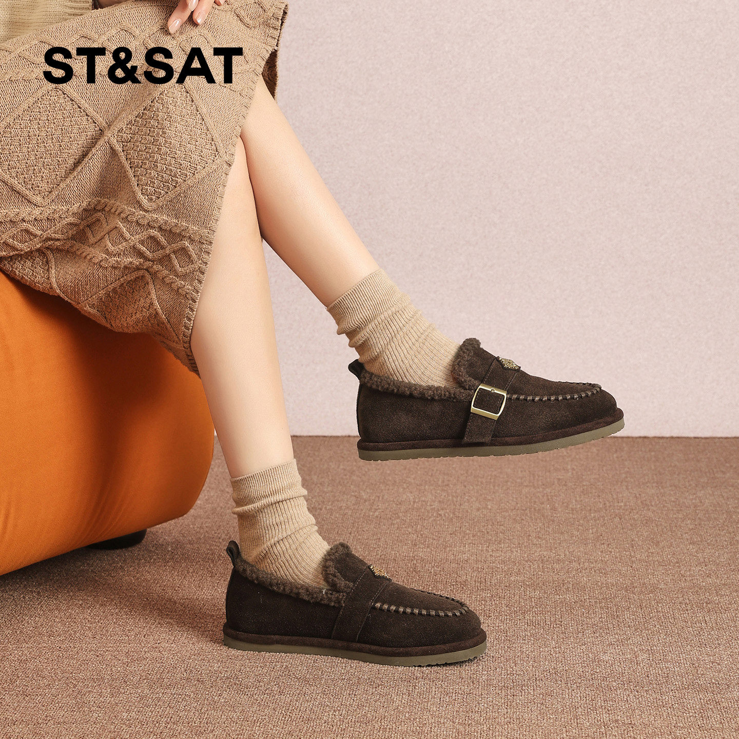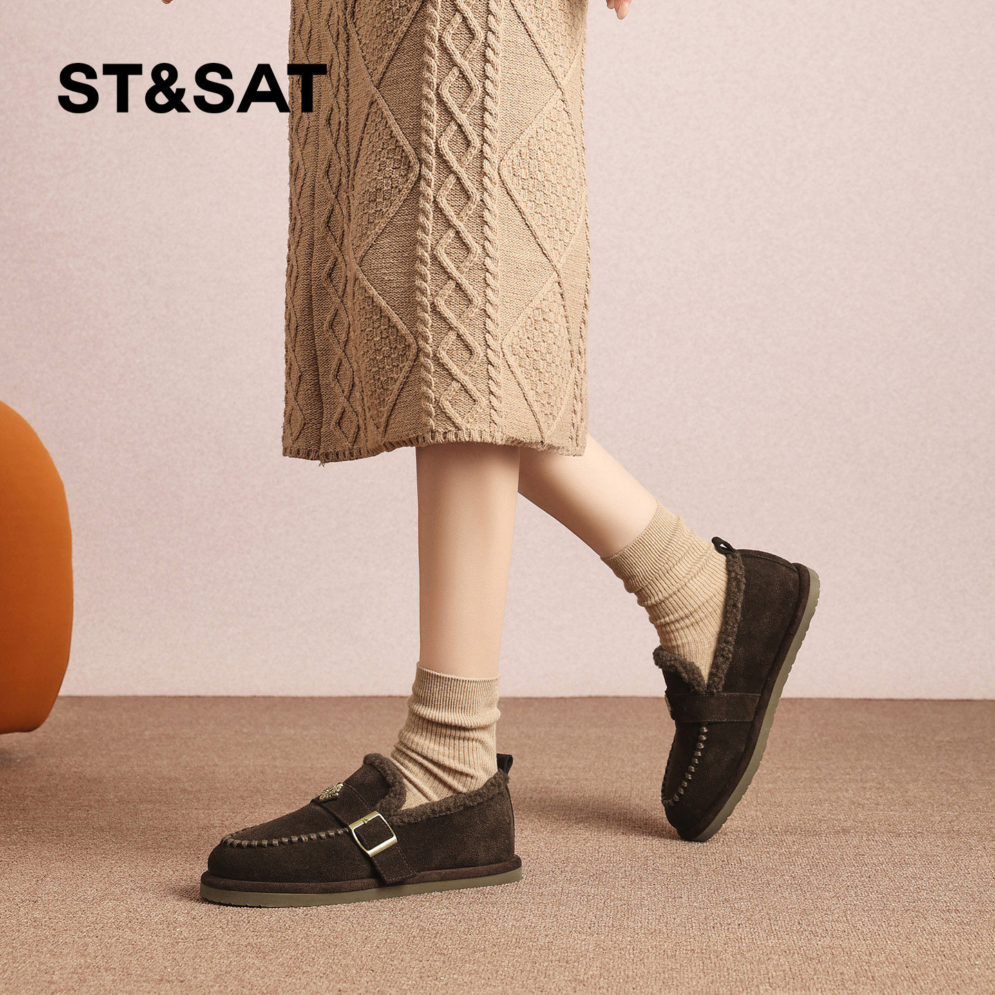 星期六复古加绒棉鞋女冬2025新款皮带扣软底保暖毛毛鞋加厚雪地鞋