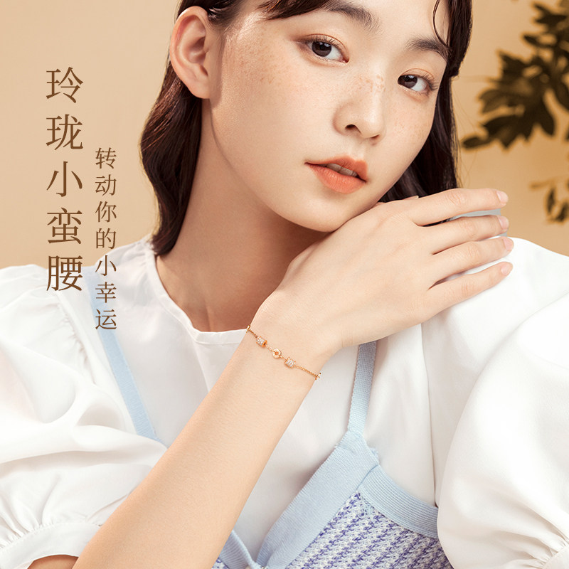 周大生小蛮腰纯银手链女玫瑰金色轻奢小众孔雀石本命年礼物送女友