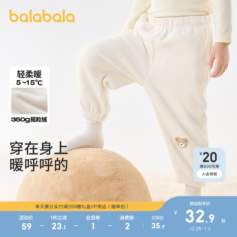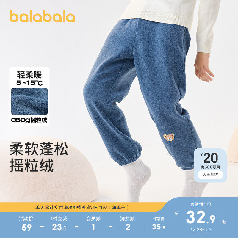 巴拉巴拉儿童裤子冬季加厚保暖摇粒绒可外穿小童大童男童女童睡裤