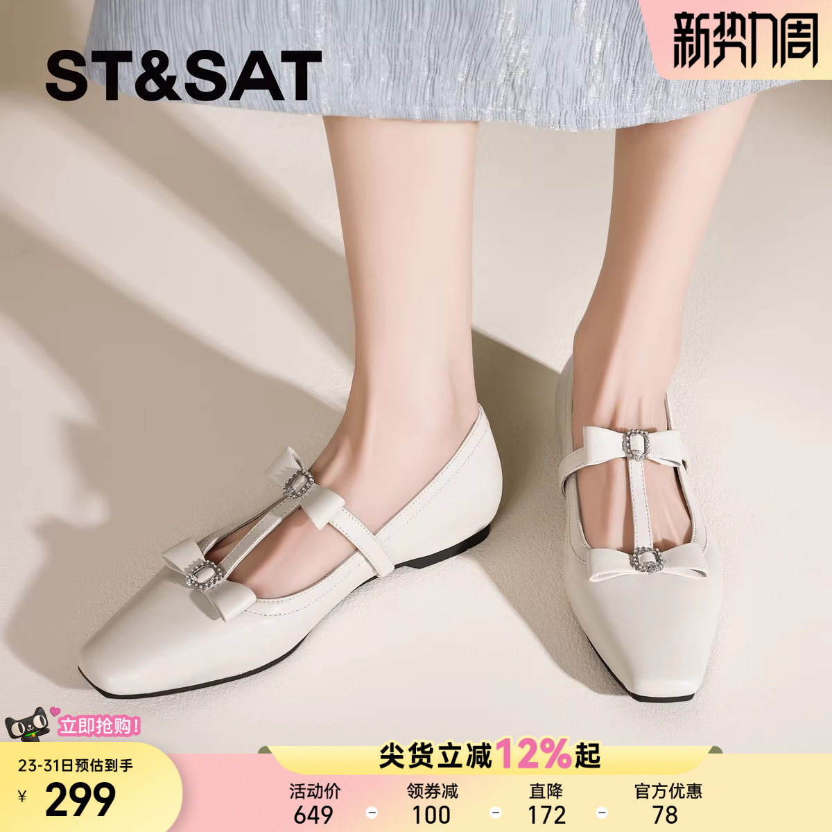 星期六羊皮浅口单鞋女鞋2025新款爆款法式气质低跟玛丽珍鞋
