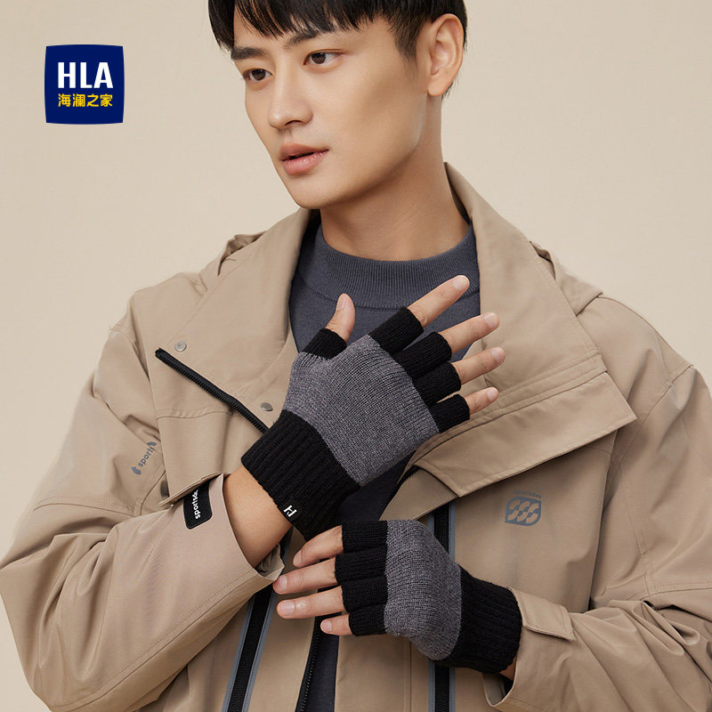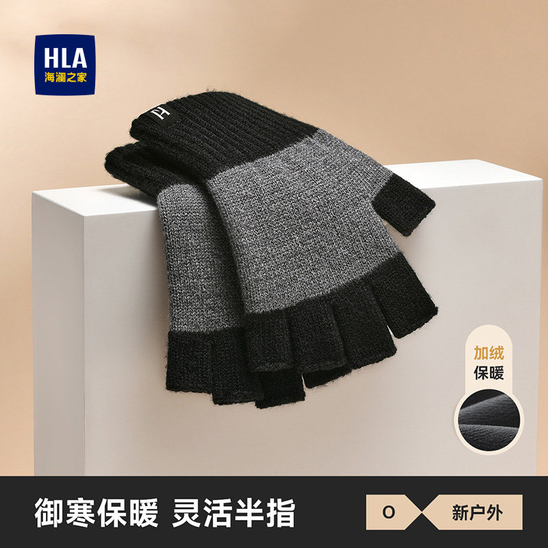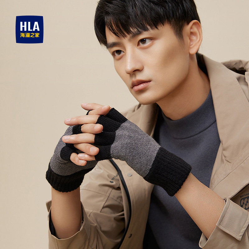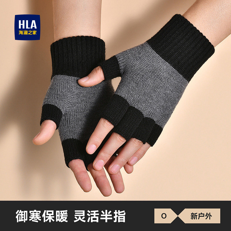 海澜之家针织手套半指毛线露指男款2025新款秋冬保暖触屏学生写字