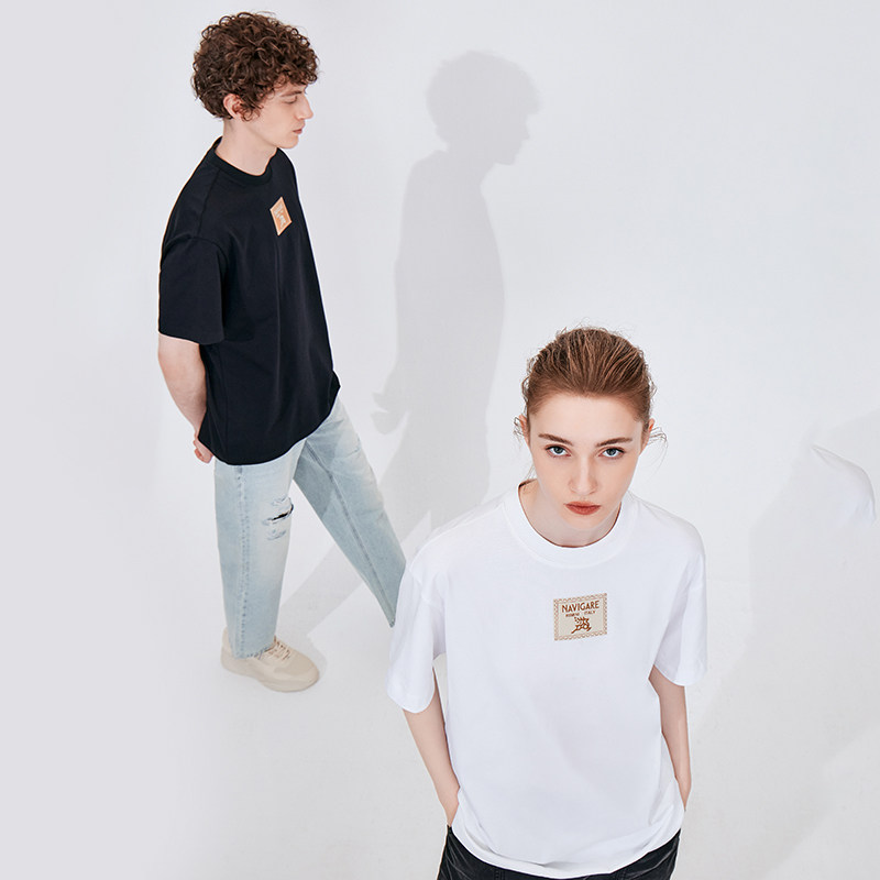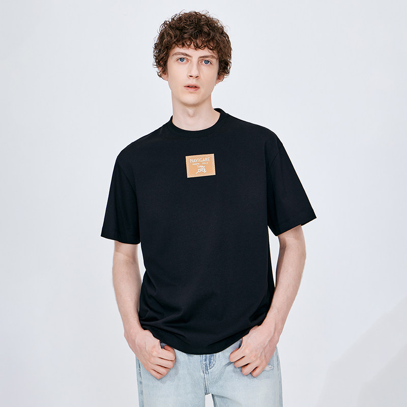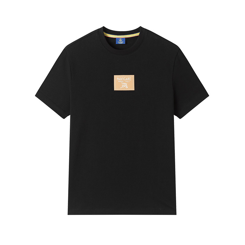 [纯棉]Navigare意大利小帆船黑色t恤男短袖夏季休闲圆领情侣体恤