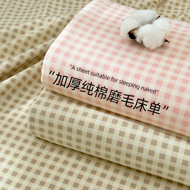 加厚磨毛纯棉床单单件100全棉学生宿舍被单人纯色秋冬枕套三件套a