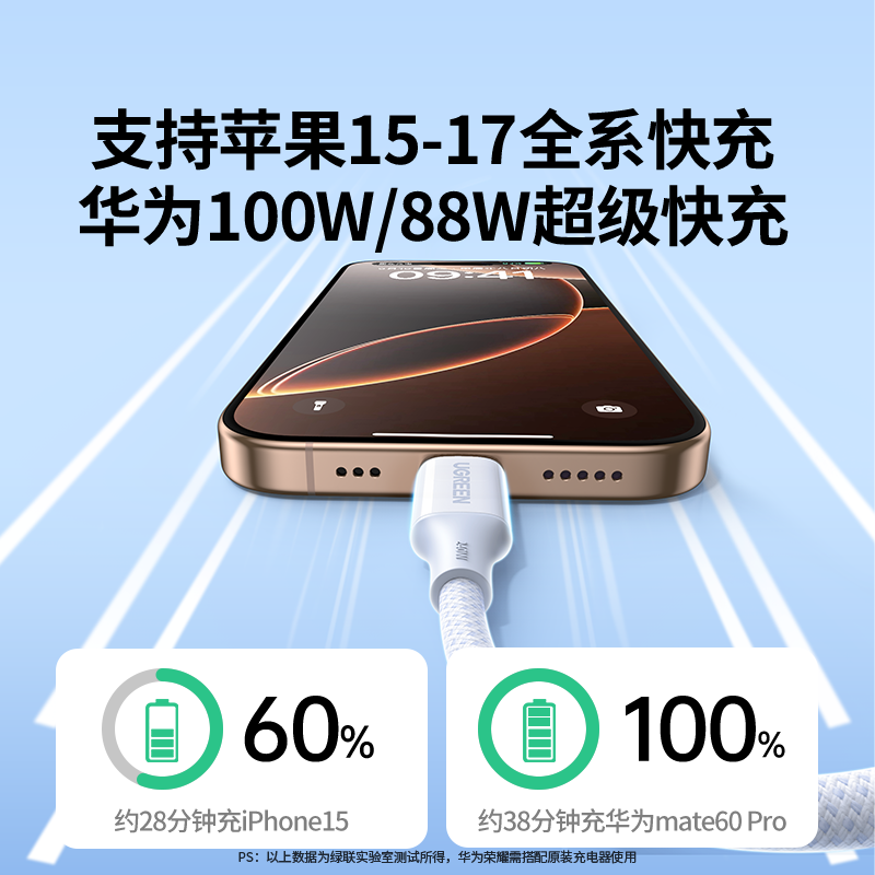 绿联240w双头typec数据线充电线PD快充适用苹果17/16iphone15华为macbook小米17ipadpro电脑笔记本手机ctoc口