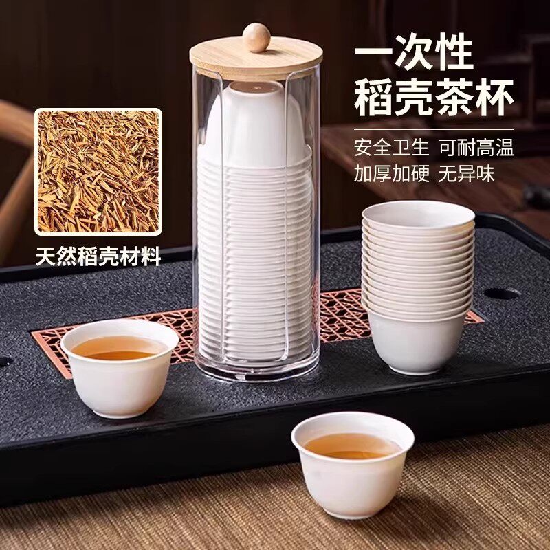 一次性茶杯高档品茶杯小号功夫小茶杯塑料小酒杯水杯杯子稻壳茶杯