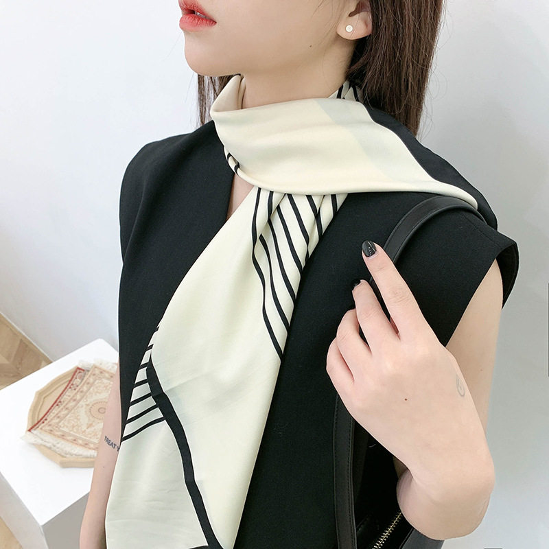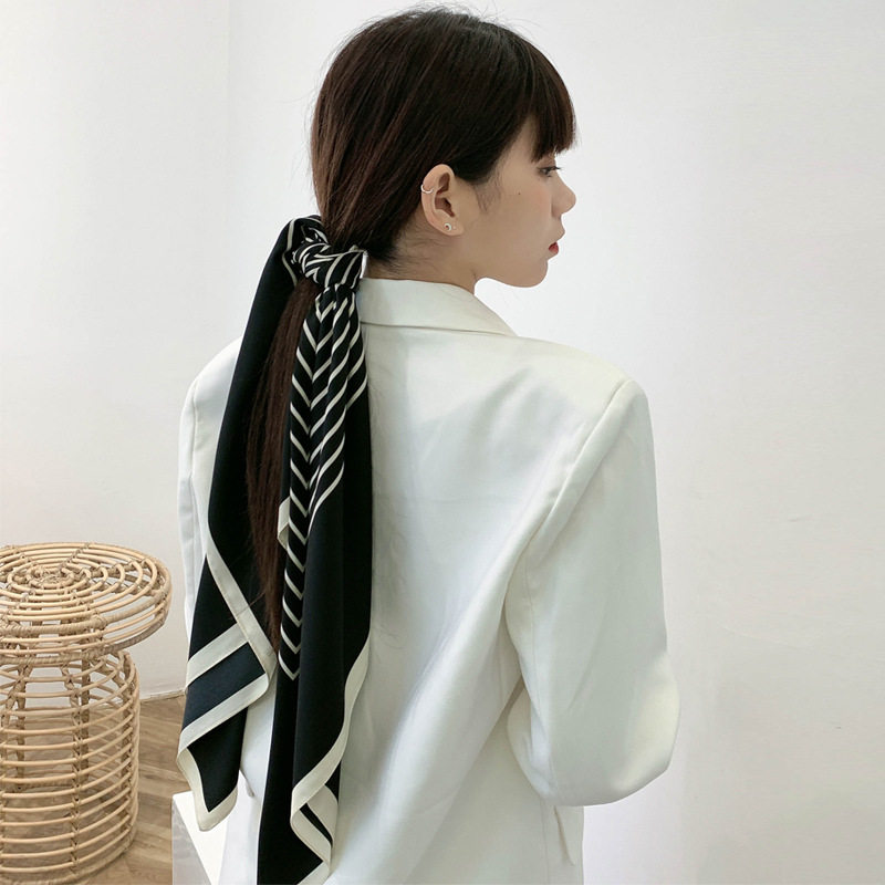 90大方巾韩版黑白条纹时尚经典方巾女士百搭领巾发饰丝巾
