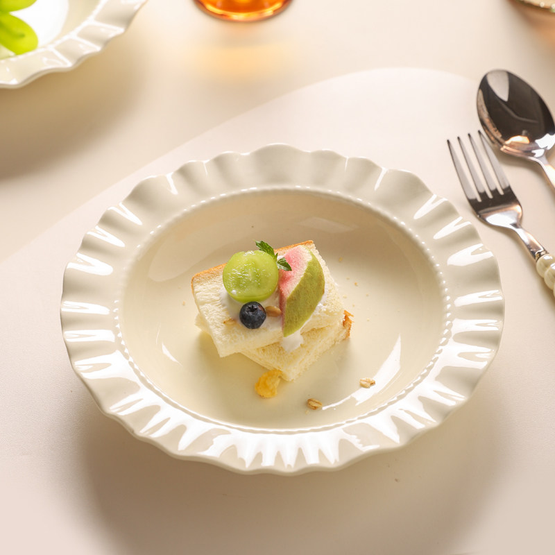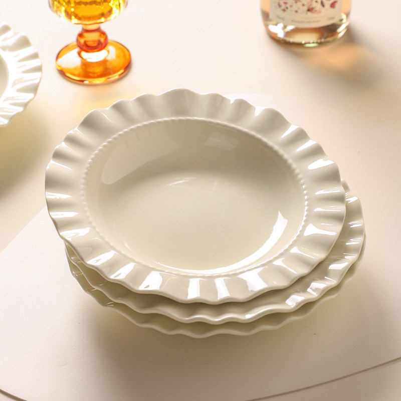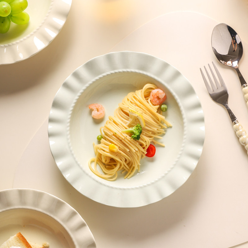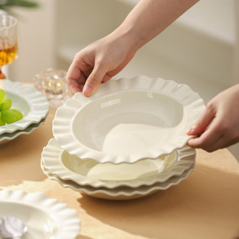 创意ins风高级感荷叶边陶瓷盘意面盘深盘西餐盘水果沙拉碗酸奶碗