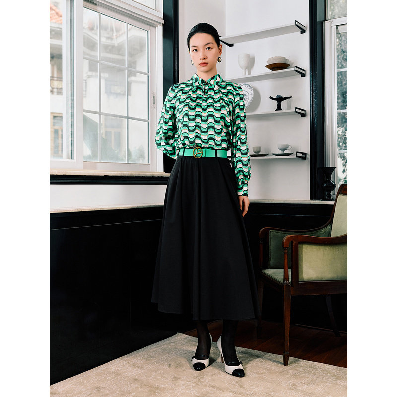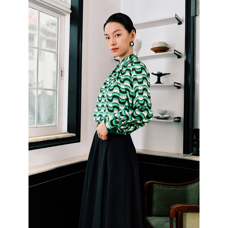 【真丝系列】YINER音儿秋季弹力桑蚕丝衬衫提花波纹上衣