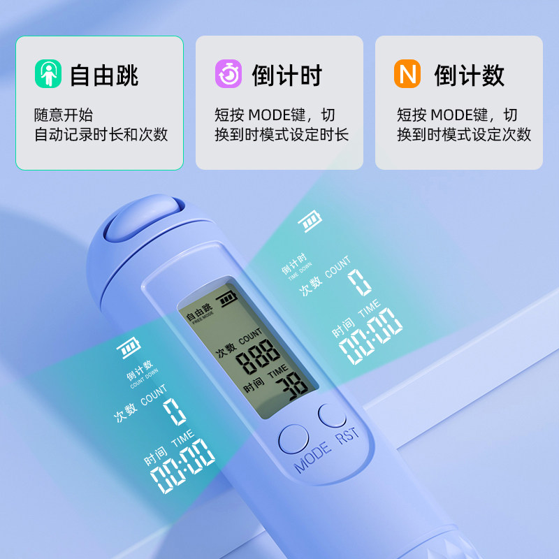 中考健身减肥专用跳绳初中生小学生计时计数PU跳绳体育考试钢丝绳