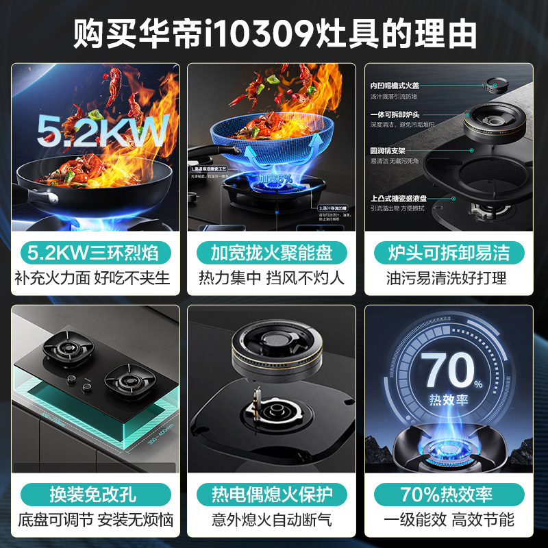 华帝燃气灶i10309嵌入式煤气灶家用灶台天然气灶液化气官方旗舰店