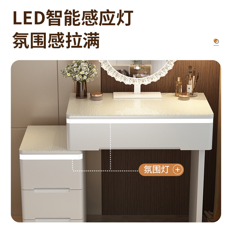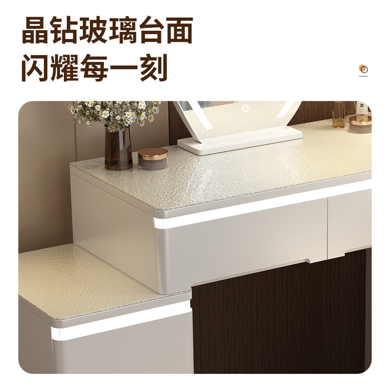 新款实木梳妆台小户型卧室现代简约玻璃化妆台斗柜一体烤漆化妆桌