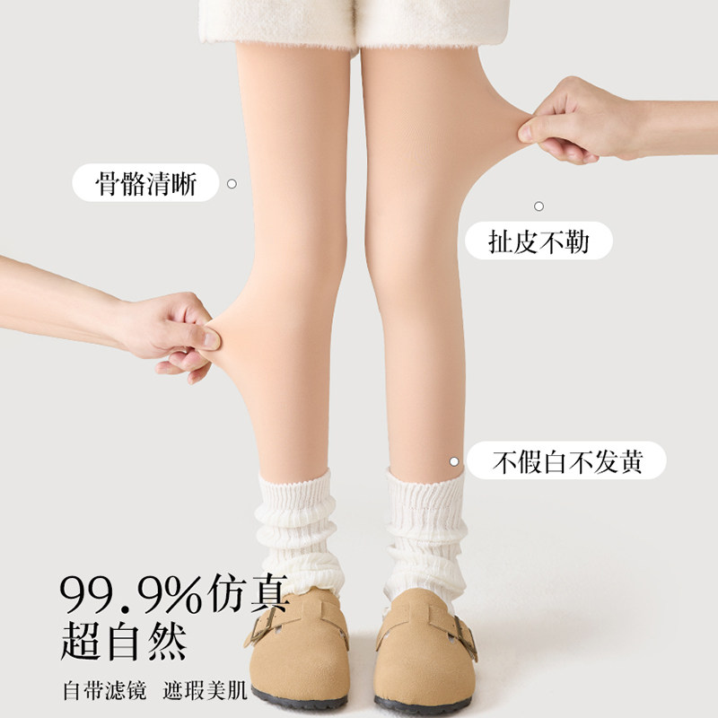 儿童光腿神器秋冬加绒女孩肤色连裤袜丝袜冬季加厚女童肉色打底裤