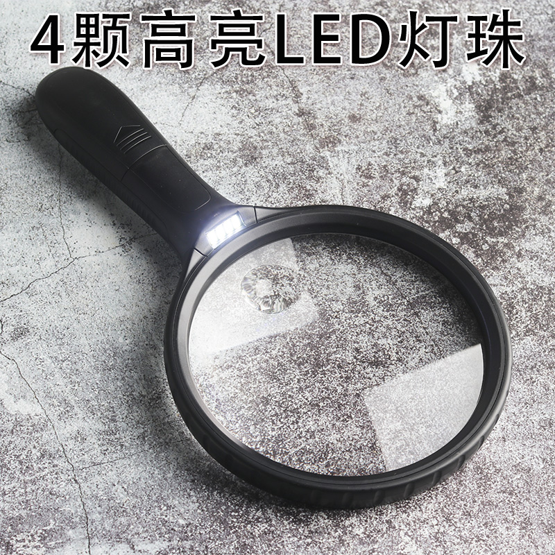 手持放大镜高倍带LED灯30高清老人阅读老年学生儿童鉴定维修用300扩大镜100专用1000德便携式60国工艺