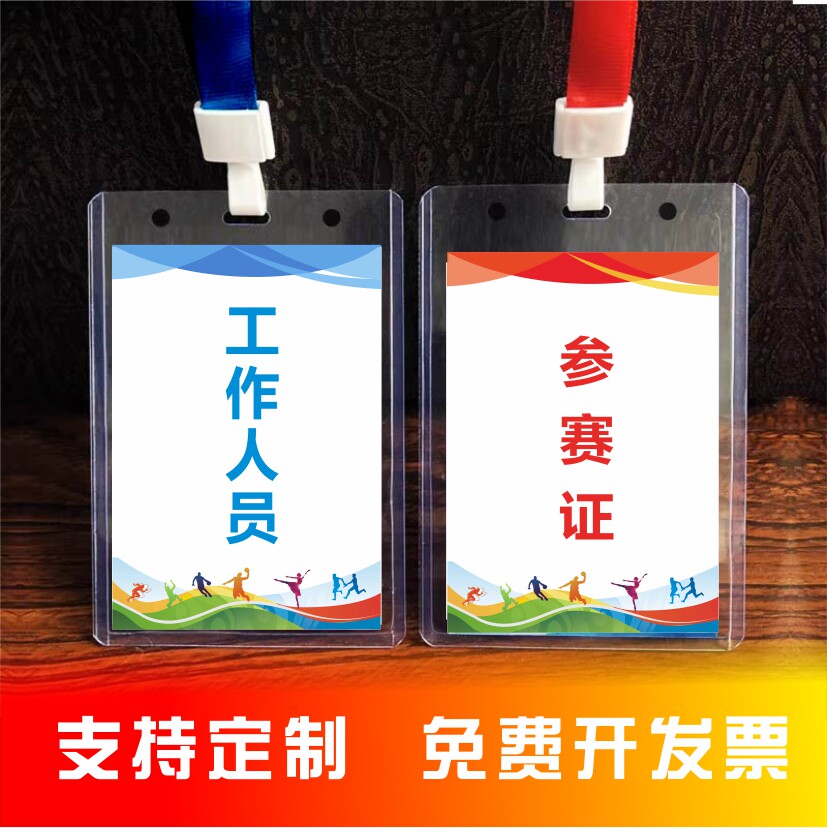 裁判员证工作牌单面透明卡套定制篮球足球马拉松比赛挂绳胸牌制作