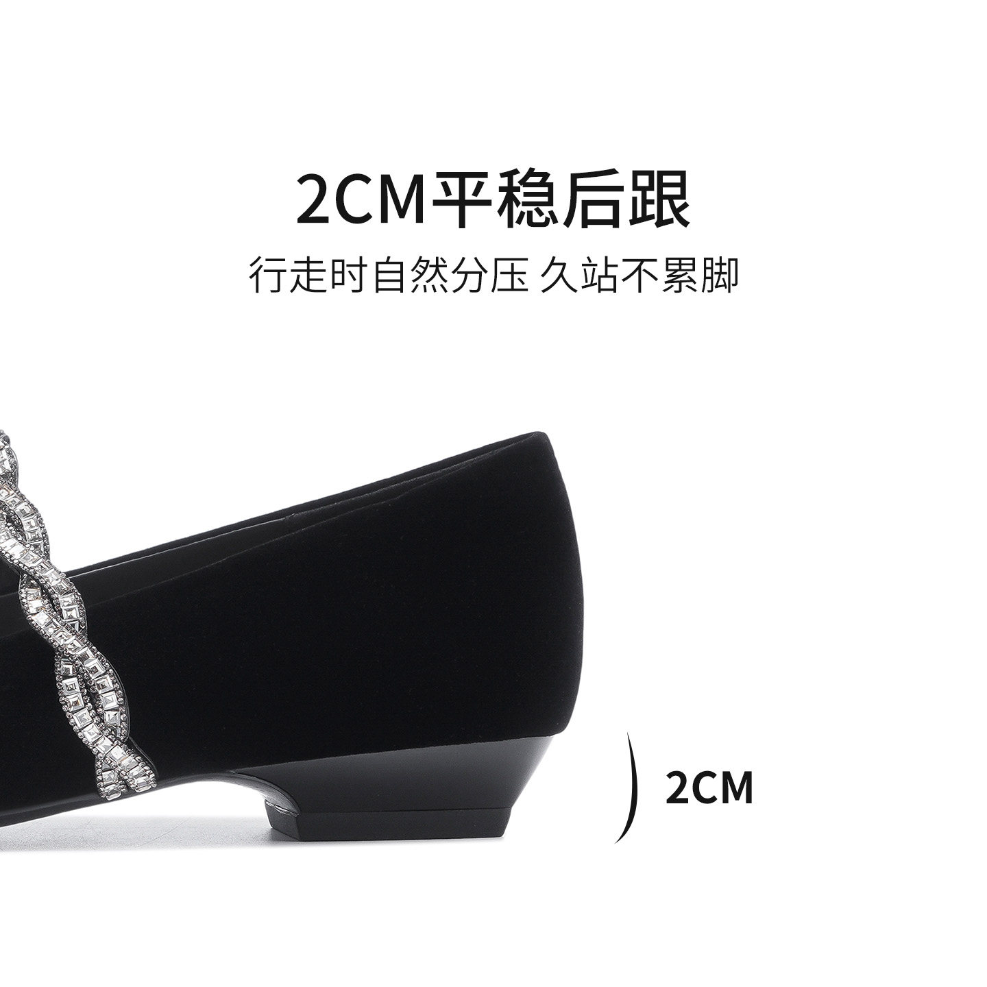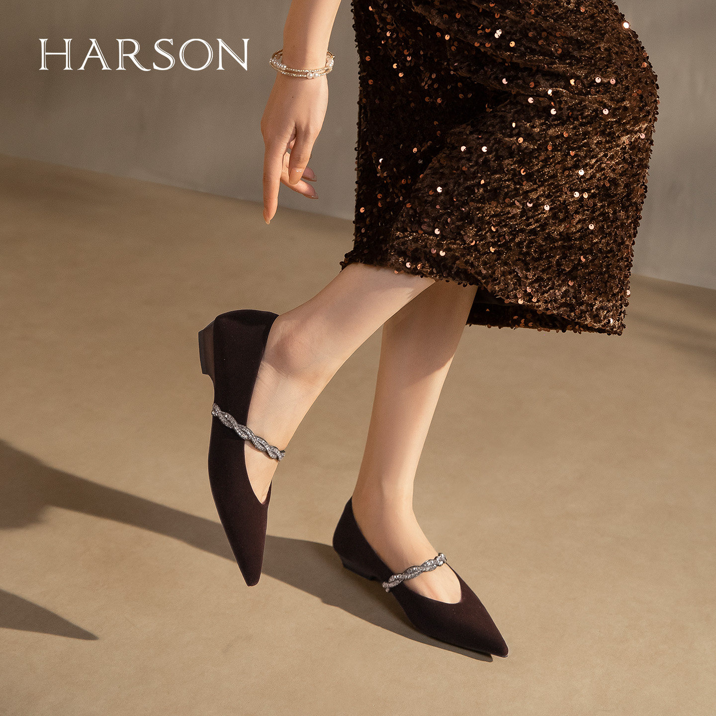哈森优雅水钻一字带单鞋女2025秋季新款尖头低跟通勤HWL250170