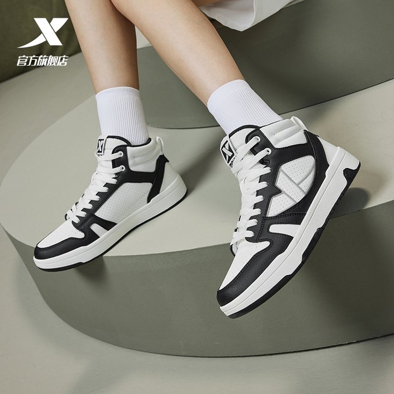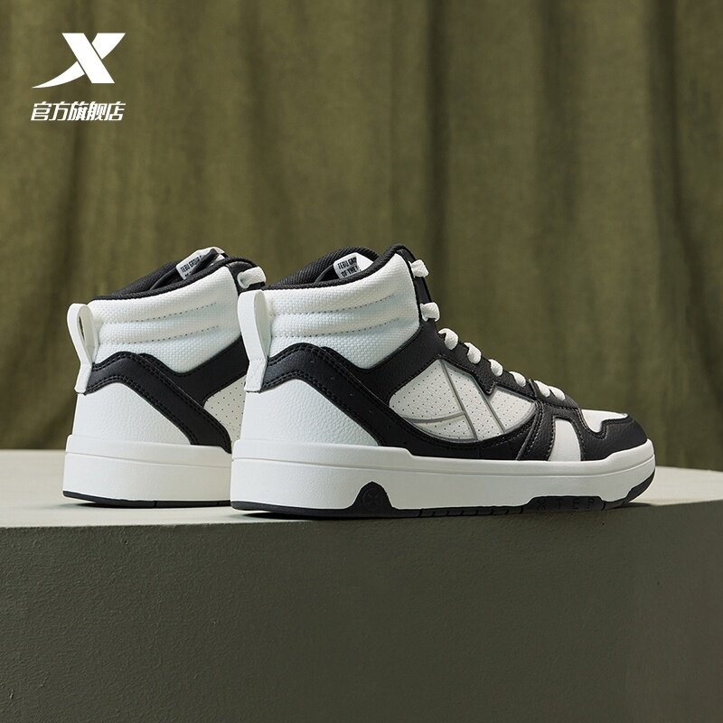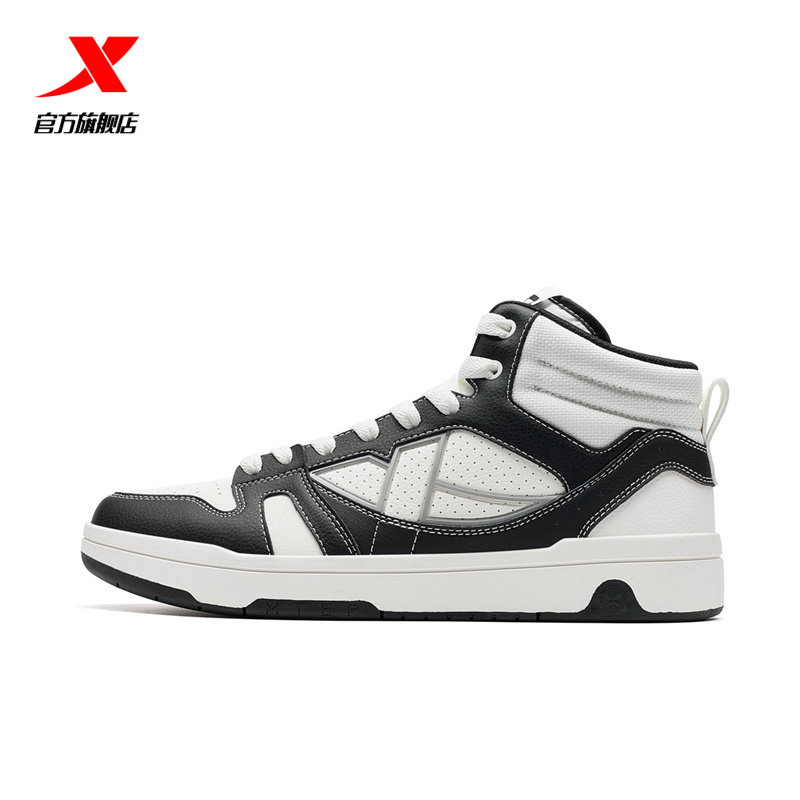 特步maxx-lite板鞋|高帮男鞋2025夏季新款革面休闲鞋黑白运动鞋子