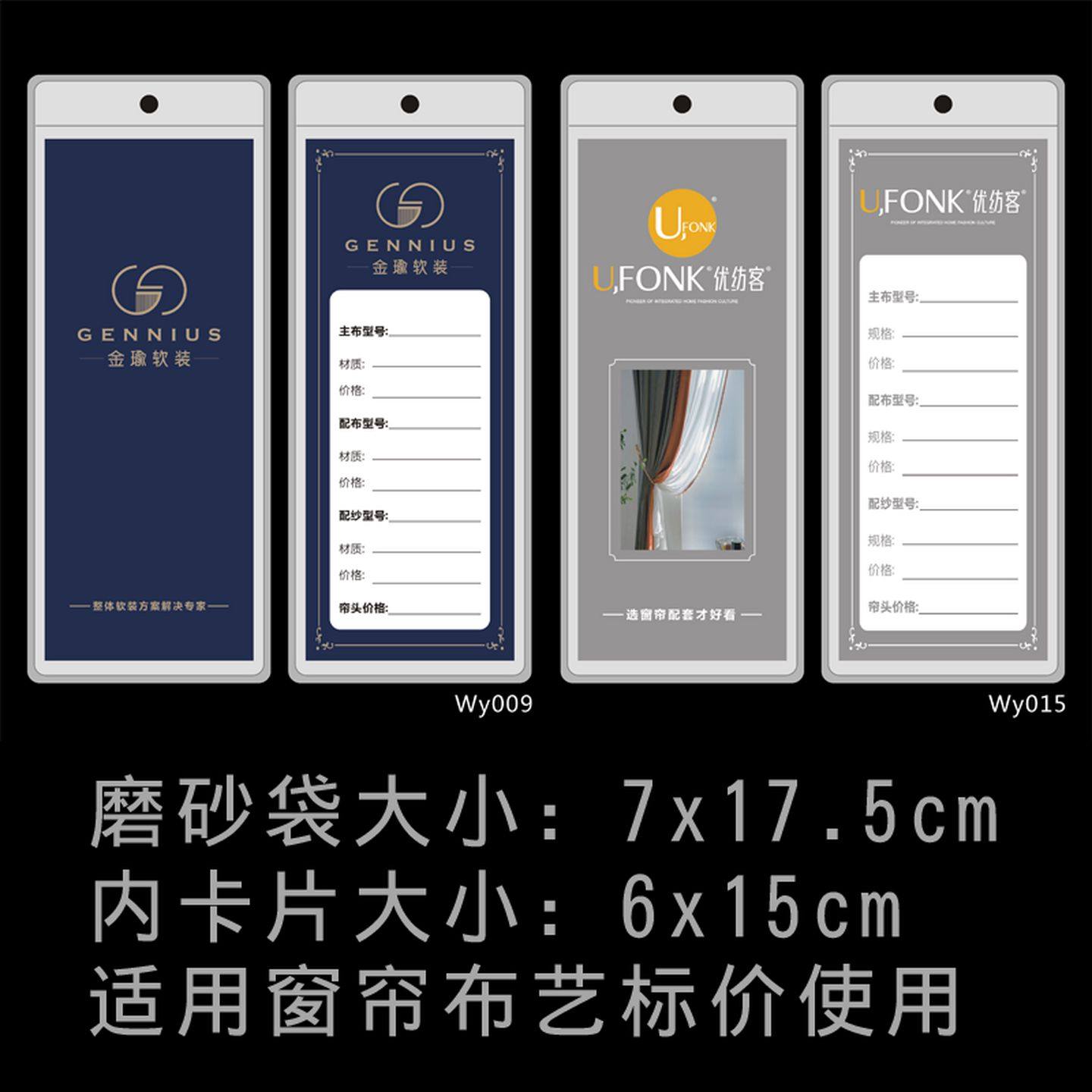 透明袋装窗帘标价卡带袋子的布艺挂牌磨砂袋装标价签窗帘价格吊牌