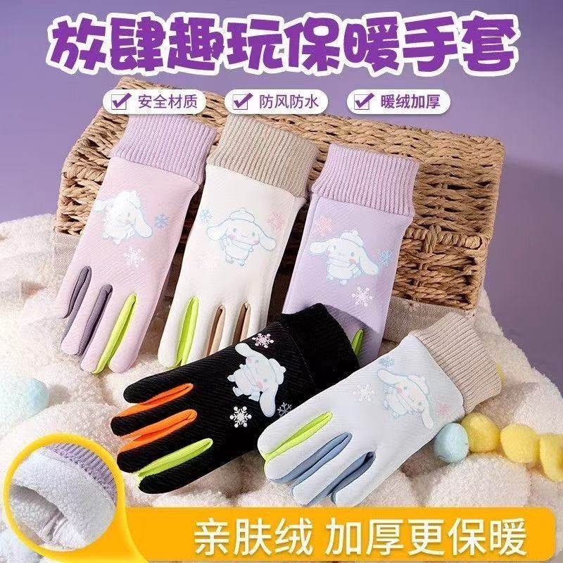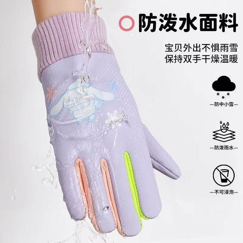 儿童手套冬季保暖男女童小孩加绒五指户外骑行防风防滑防泼水手套
