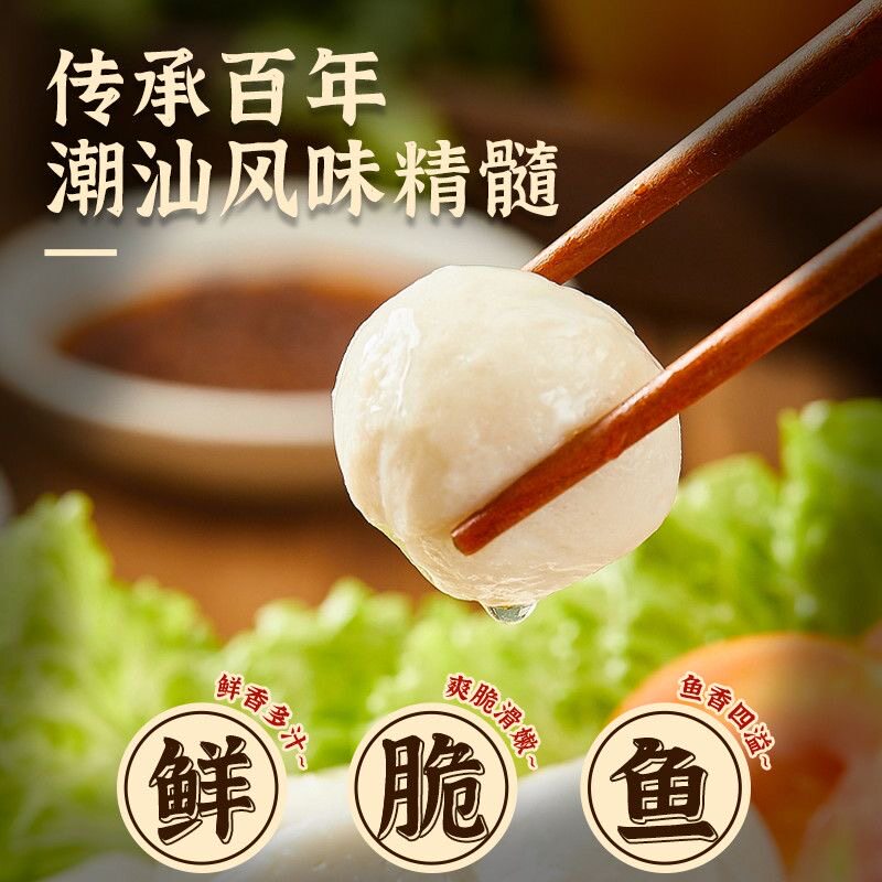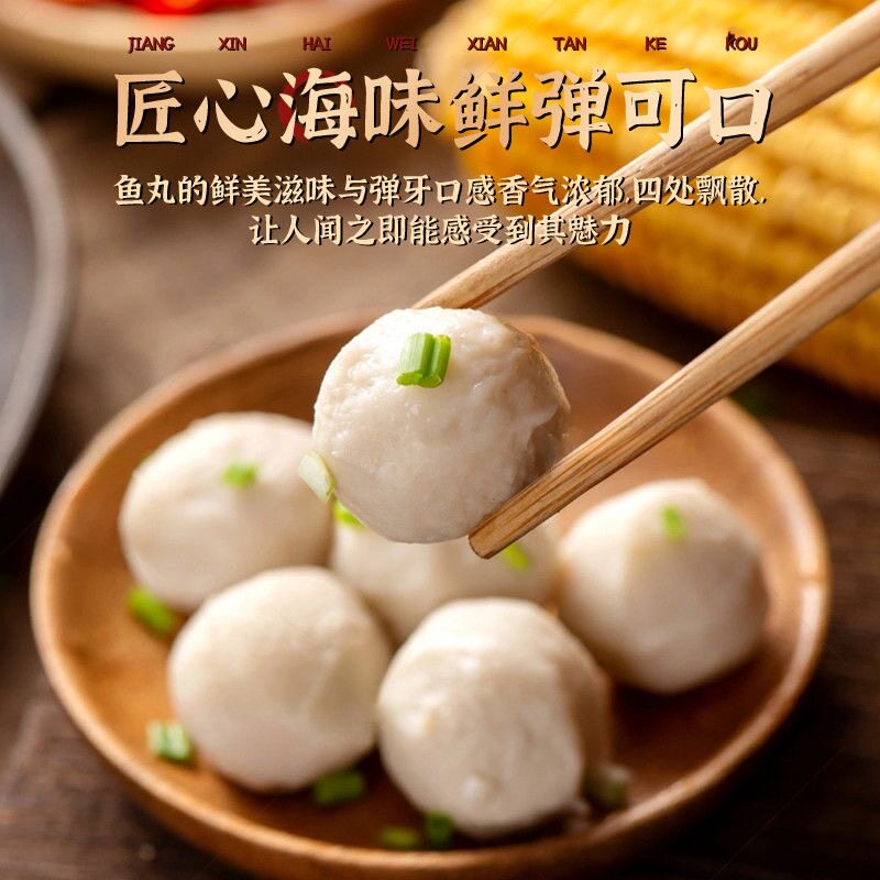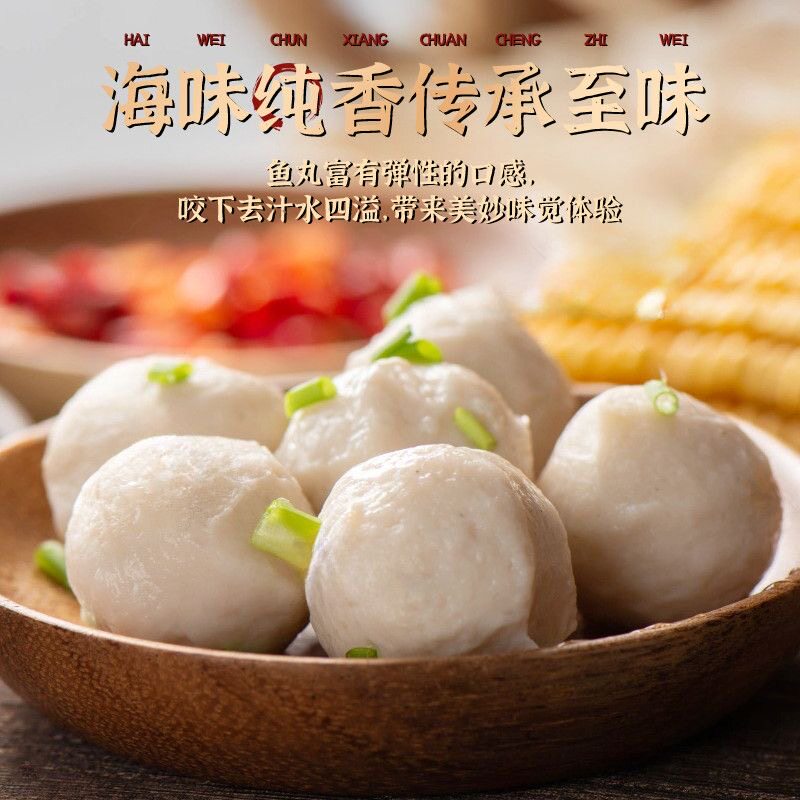 鱼丸手工实心鱼肉丸潮汕特产冷冻火锅烧烤关东煮食材鱼蛋丸子爆汁