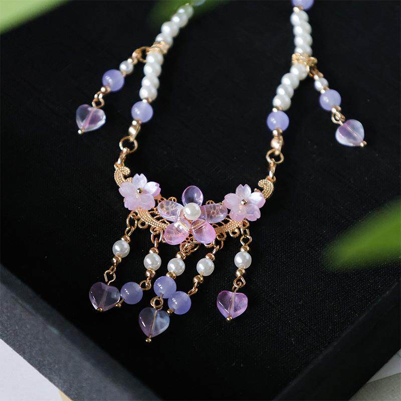 古风项链紫色短软璎珞唐风明制项圏百搭项饰日常出行中式汉服配饰