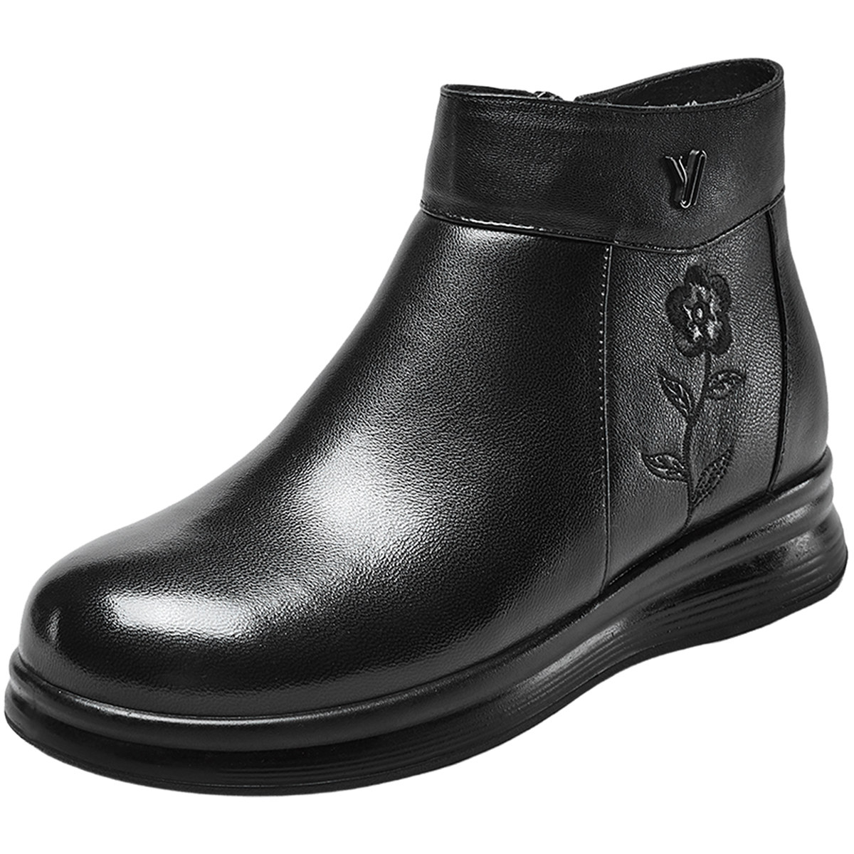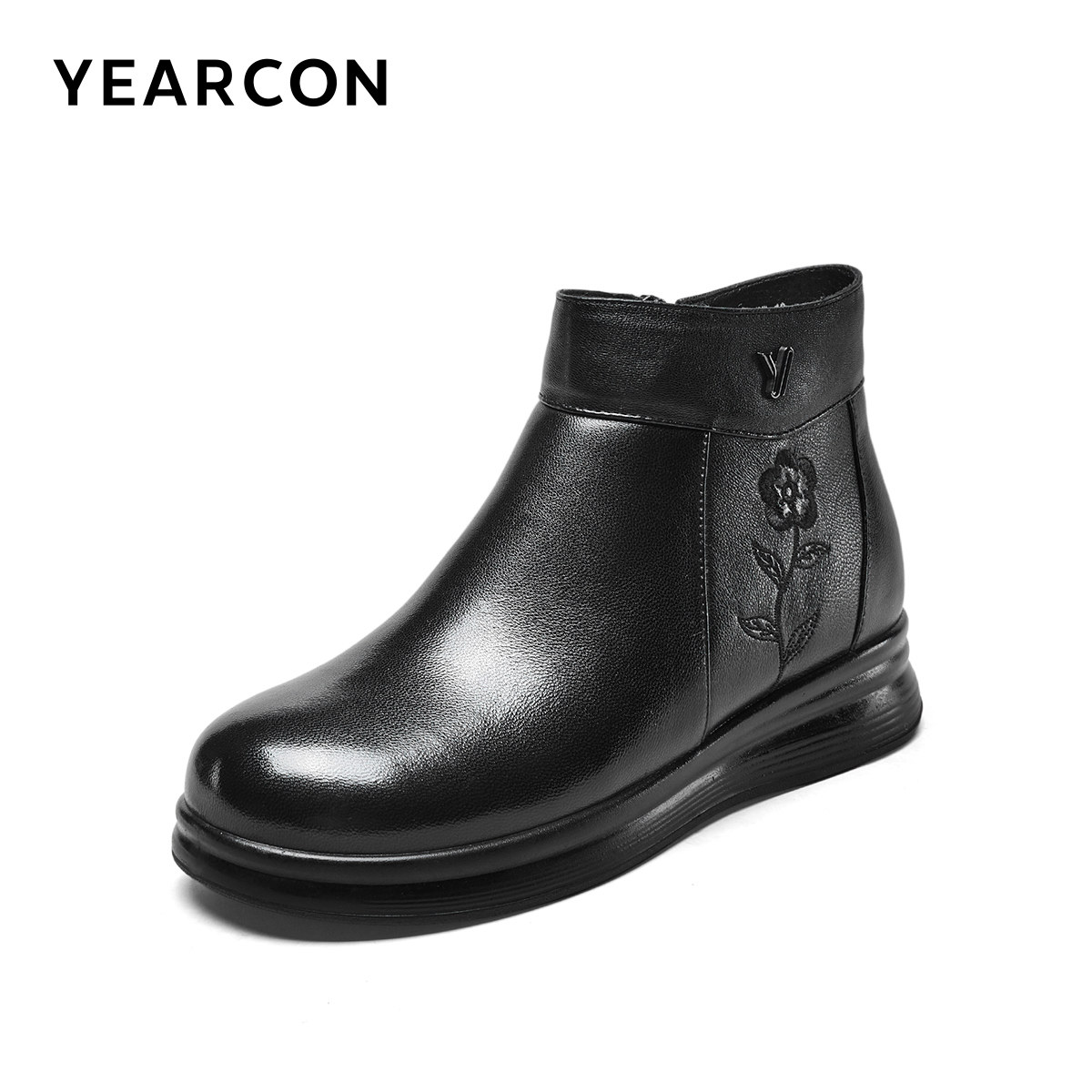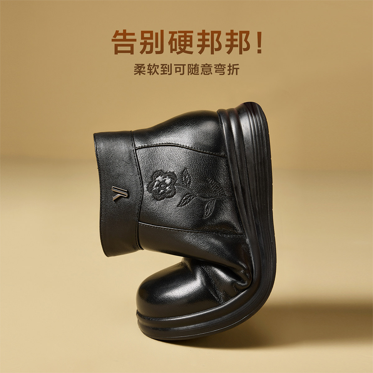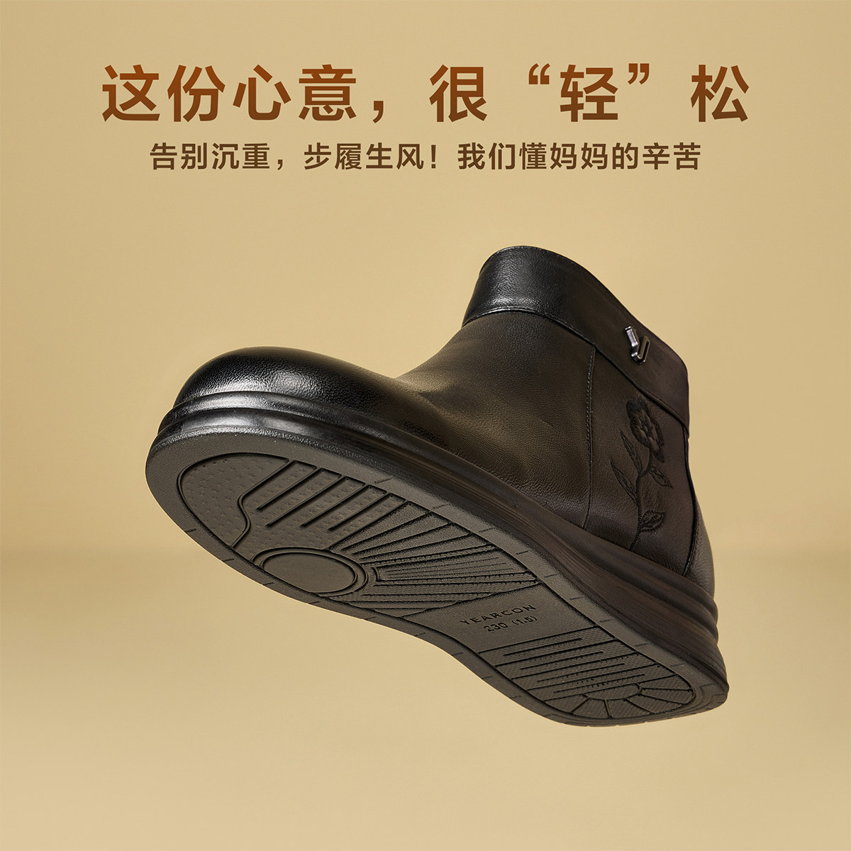 意尔康女鞋2025冬季短靴真皮短筒皮靴中老年妈妈棉鞋加绒保暖皮鞋