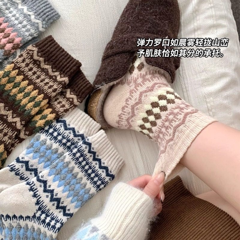 耐尔绵羊毛袜子女秋冬长袜加厚保暖复古百搭中筒袜ins潮堆堆袜