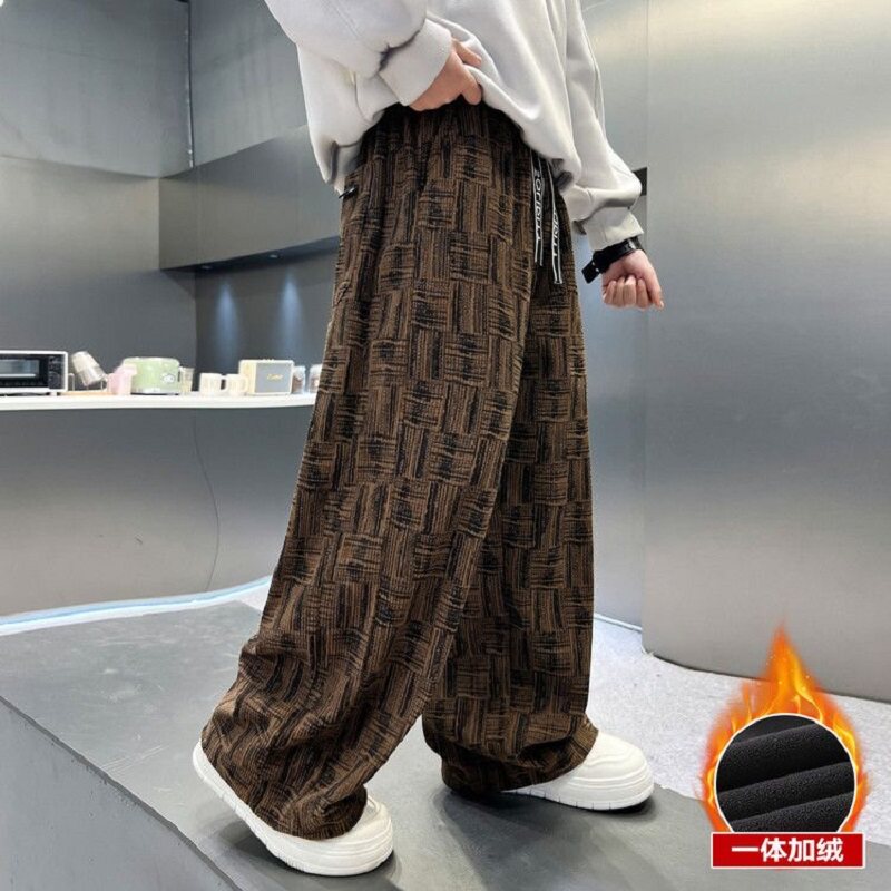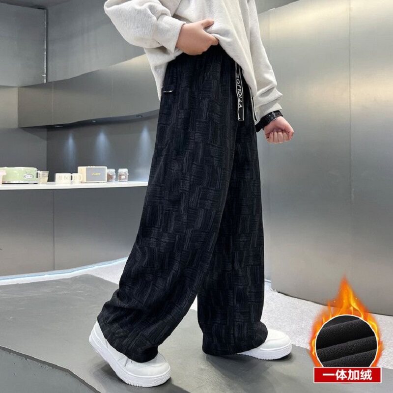 男童冬装裤子秋冬款2026新款一体绒保暖直筒裤中大童冬季运动长裤