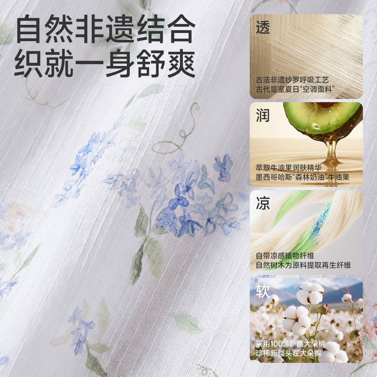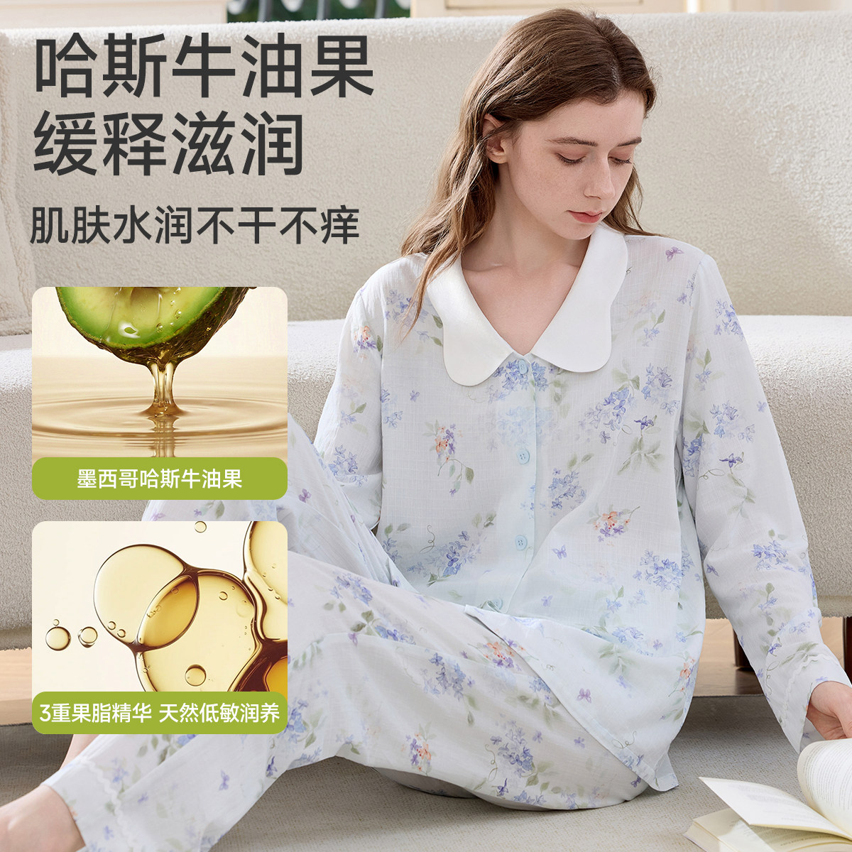 婧麒牛油果纱罗月子服产后孕妇睡衣孕期哺乳透气待产妇家居服套装
