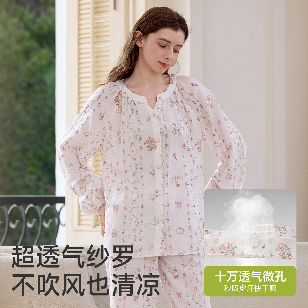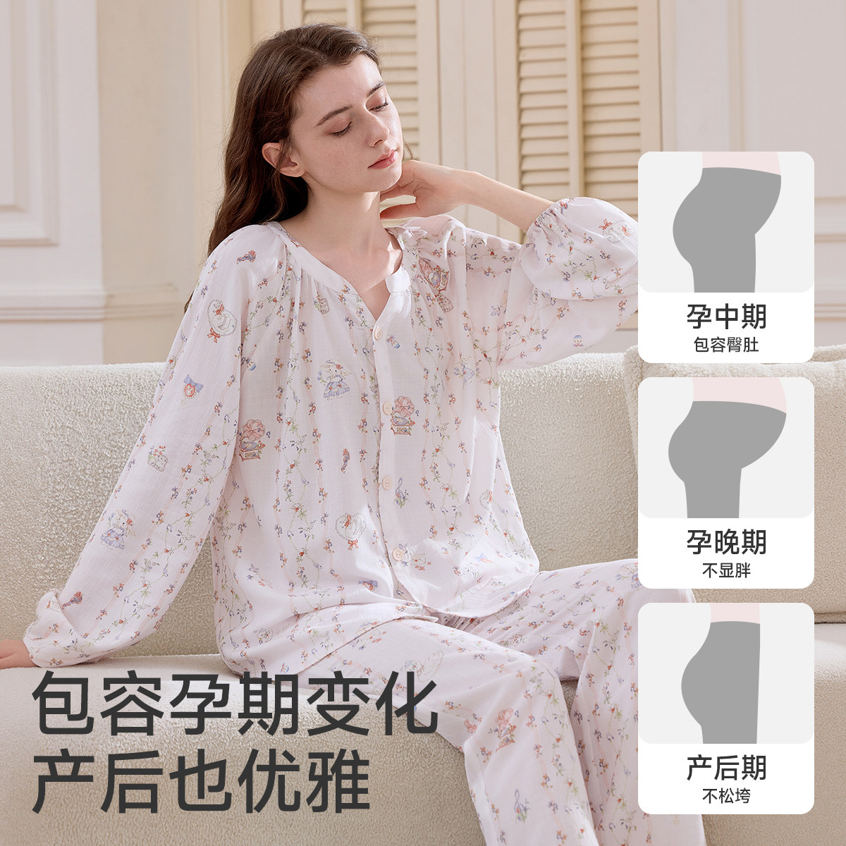 空气棉月子服秋冬纯棉产后夏季薄款全棉吸汗喂奶产妇哺乳孕妇睡衣
