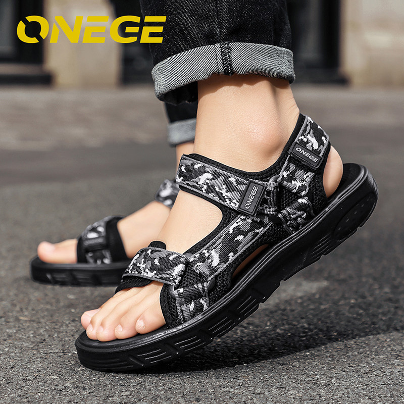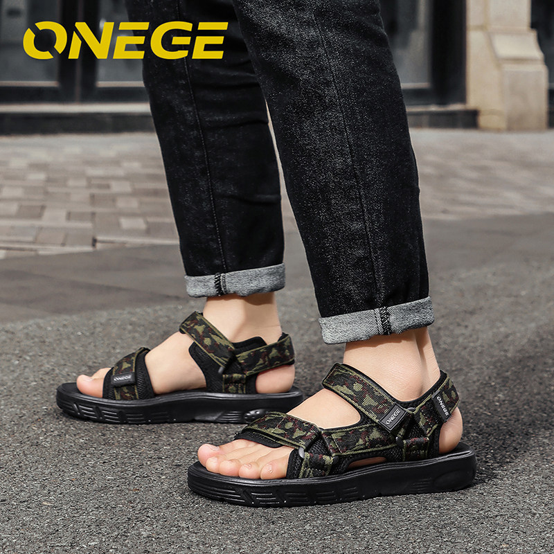 ONEGE男士凉鞋软底防滑透气防臭夏季户外爸爸沙滩鞋耐磨魔术贴