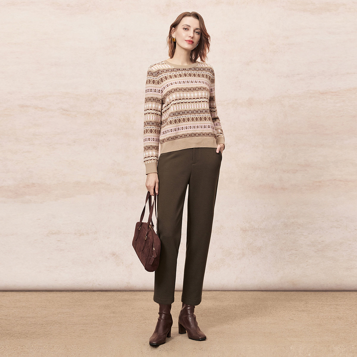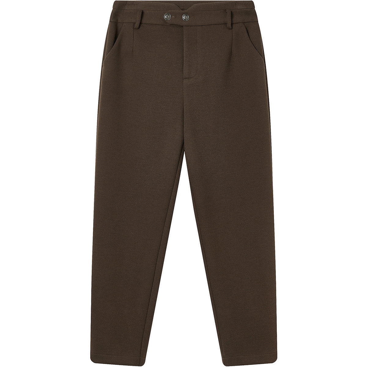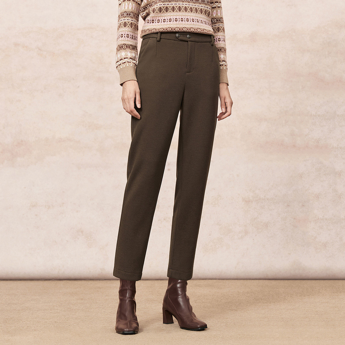 FINITY菲妮迪休闲裤2025年冬季新款加绒复古棕色垂感直筒长裤女士