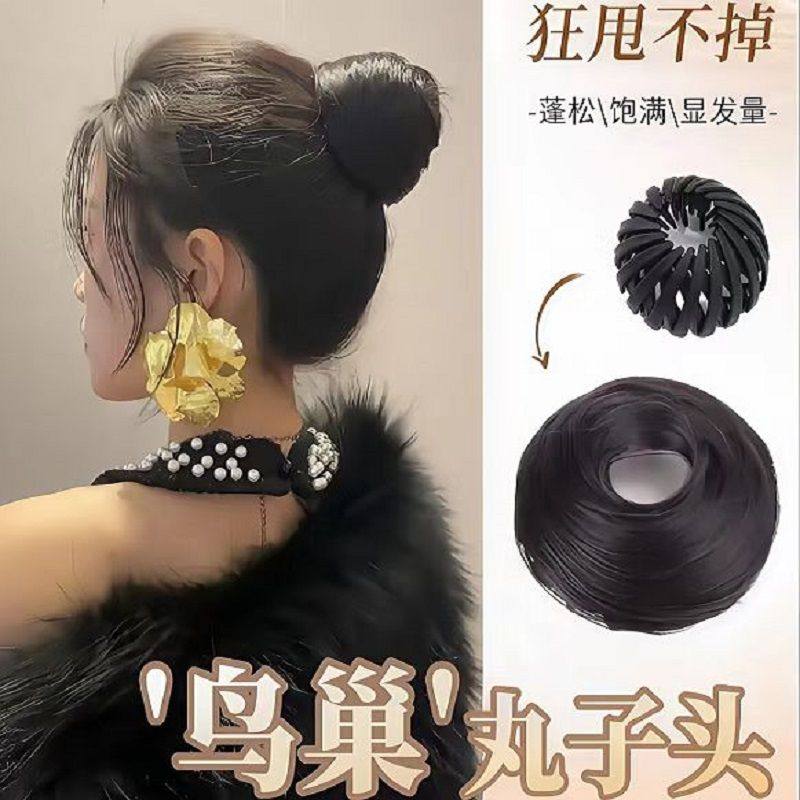 【鸟巢式】新款丸子头假发发圈随意收缩盘发器仿真发蓬松慵懒发包